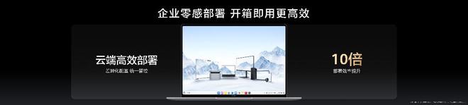 传统企业批量部署电脑,需IT人员耗时费力地制作镜像、逐台刷机、手动配置。鸿蒙电脑企业版通过企业零感部署,实现了“开箱即用”。IT管理员在网页端完成策略配置后,员工拿到新电脑只需开机联网,系统即可在初始化阶段自动完成安全策略、企业应用及个性化环境的部署。这将大规模设备部署时间从以“周”计缩短至以“天”计,极大降低了IT运维成本与复杂性。