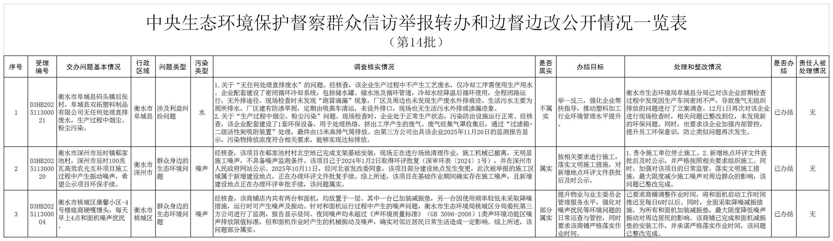 按照中央第三生态环境保护督察组工作要求,12月11日,我市已完成对交办的第十四批3件群众信访举报案件的调查处理,已办结3件。