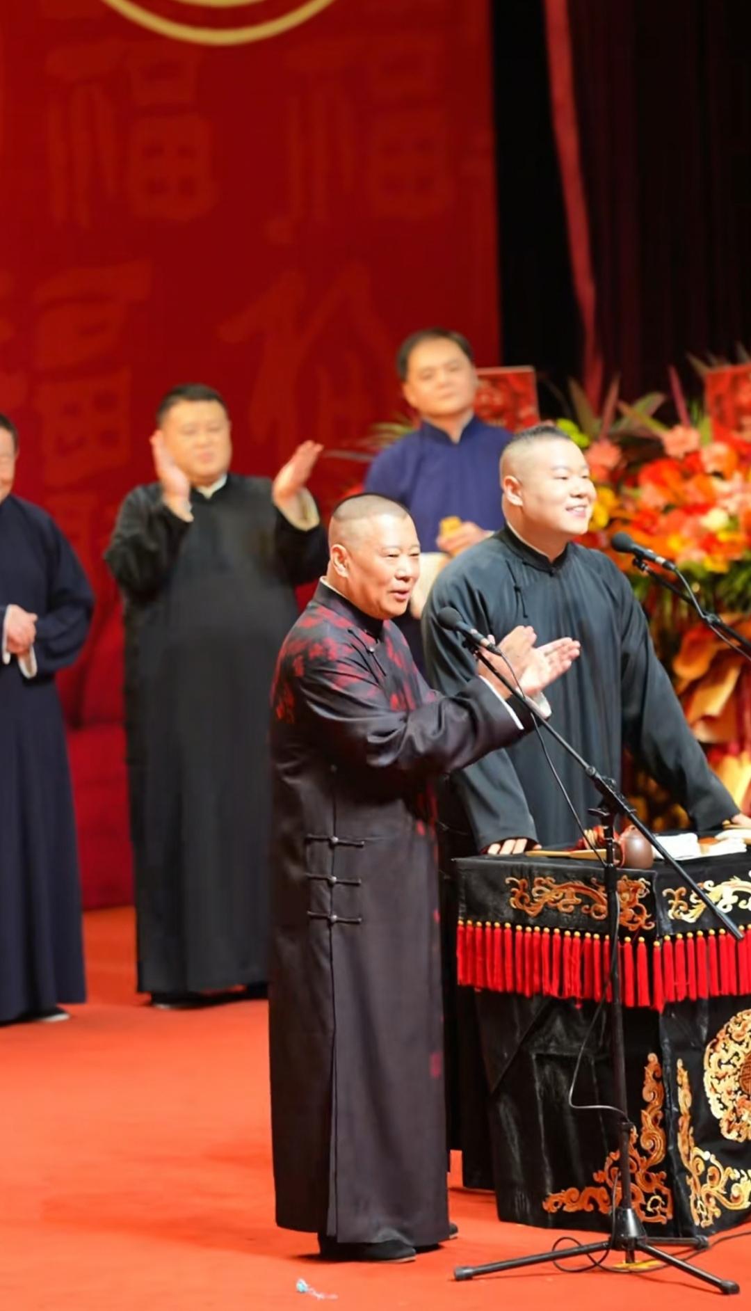 杨少华长子杨威到德云社参加纲丝节活动了,登台说相声,郭德纲和妻子热情接待,并进行合影。 杨威穿着长马褂登台演出,底下观众笑声频频,于谦见到杨威先生,也特别尊敬。表演结束后,郭德纲夫妻俩把杨威先生送到门口。 在纲丝节活动上,岳云鹏和郭德纲同台出演了相声。