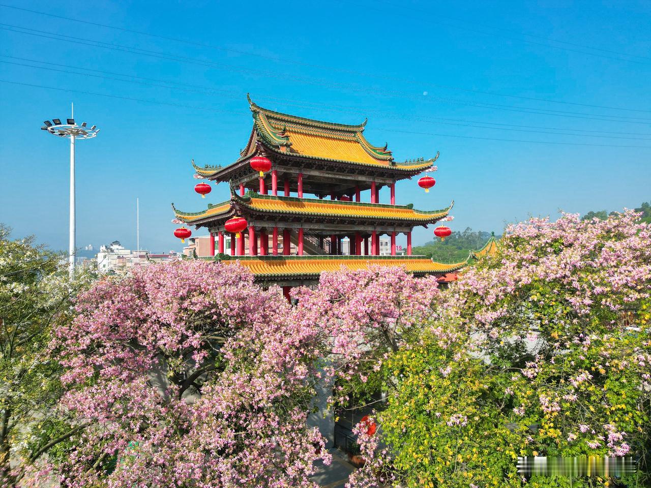美炸了!东莞观音山藏着冬日限定浪漫,异木棉花开,粉色仙境惹人醉! 冬日的颜值天花板,被东莞观音山的异木棉承包了!漫山遍野的粉白花朵缀满枝头,微风一吹,花瓣簌簌飘落,漫步其中仿佛闯入仙侠剧里的秘境。 门楼处的异木棉恣意地开放着,一团团,一簇簇,宛若粉色云彩,与古香古色门楼、苍翠林木相映成趣,随手一拍都是氛围感大片。登高途中,除了浪漫的异木棉,还有热情似火,让人无法移开视线的三角梅,争奇斗艳。漫步花海,听山间鸟鸣,看云卷云舒,所有疲惫都被治愈。 除了赏异木棉,还能打卡第一福、万福长廊、许愿池,许愿平安顺遂;偶遇仙侠NPC互动送福,沉浸式玩转仙山福地。现在还有超值特惠票可抢,性价比拉满~ 不用远行,约上好友、家人,赴一场观音山的花海之约!