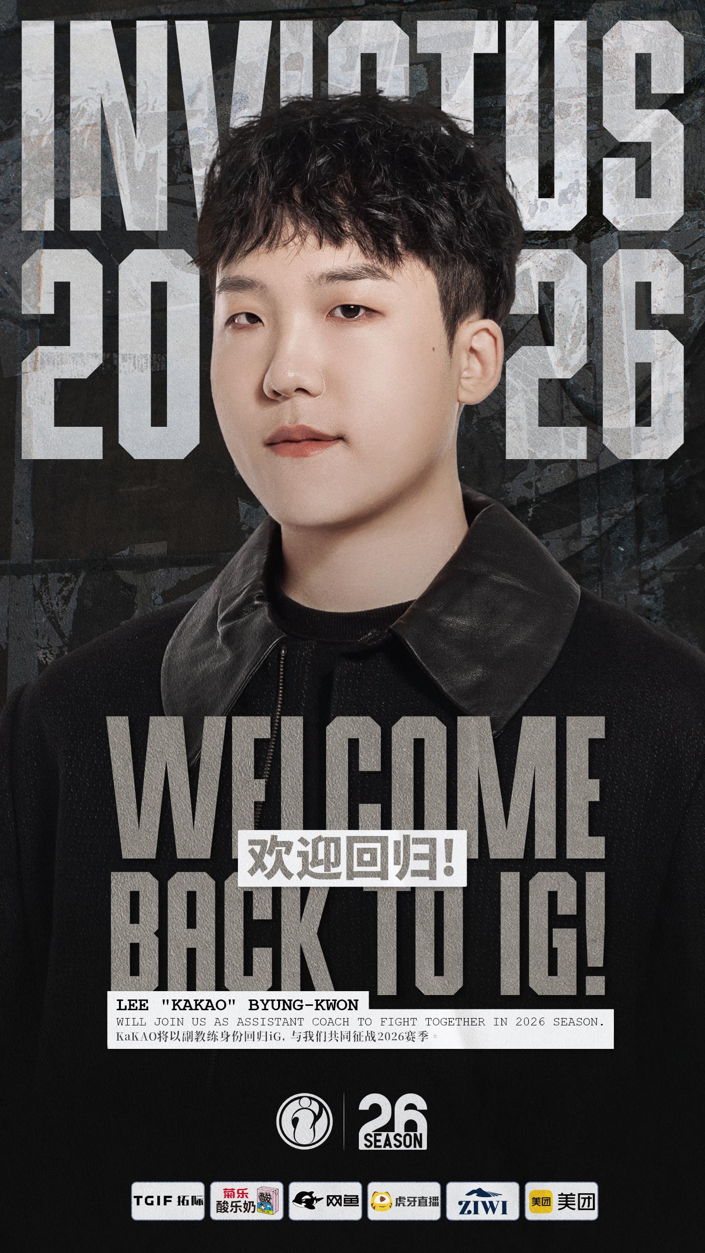 故交相携,新章共铸,感谢Mafa教练的坚守,也欢迎KaKAO教练的加入。目前俱乐部正积极配合联盟进行注册流程,前路浩荡,自此启程,期待两位教练能够引领iG新阵,开拓新的版图,焕发新的精彩。
