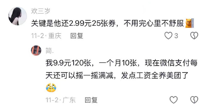 外站的神人特别多。竟然去拿美团外卖上拼好饭的价格,去影射“崩溃论”。自言自语地说