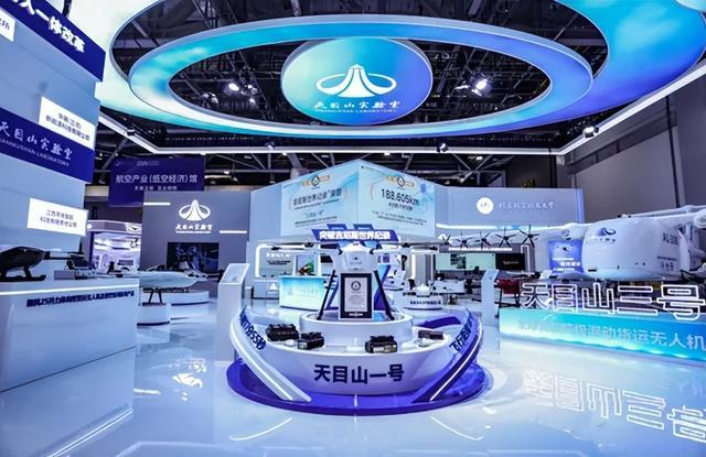 亮相博览会的“天目山一号”氢动力无人机创造了“氢燃料电池驱动的多旋翼无人机飞行的最长距离”吉尼斯世界纪录,成功完成了不间断飞行188.605公里(用时4小时17分55秒)的飞行挑战。