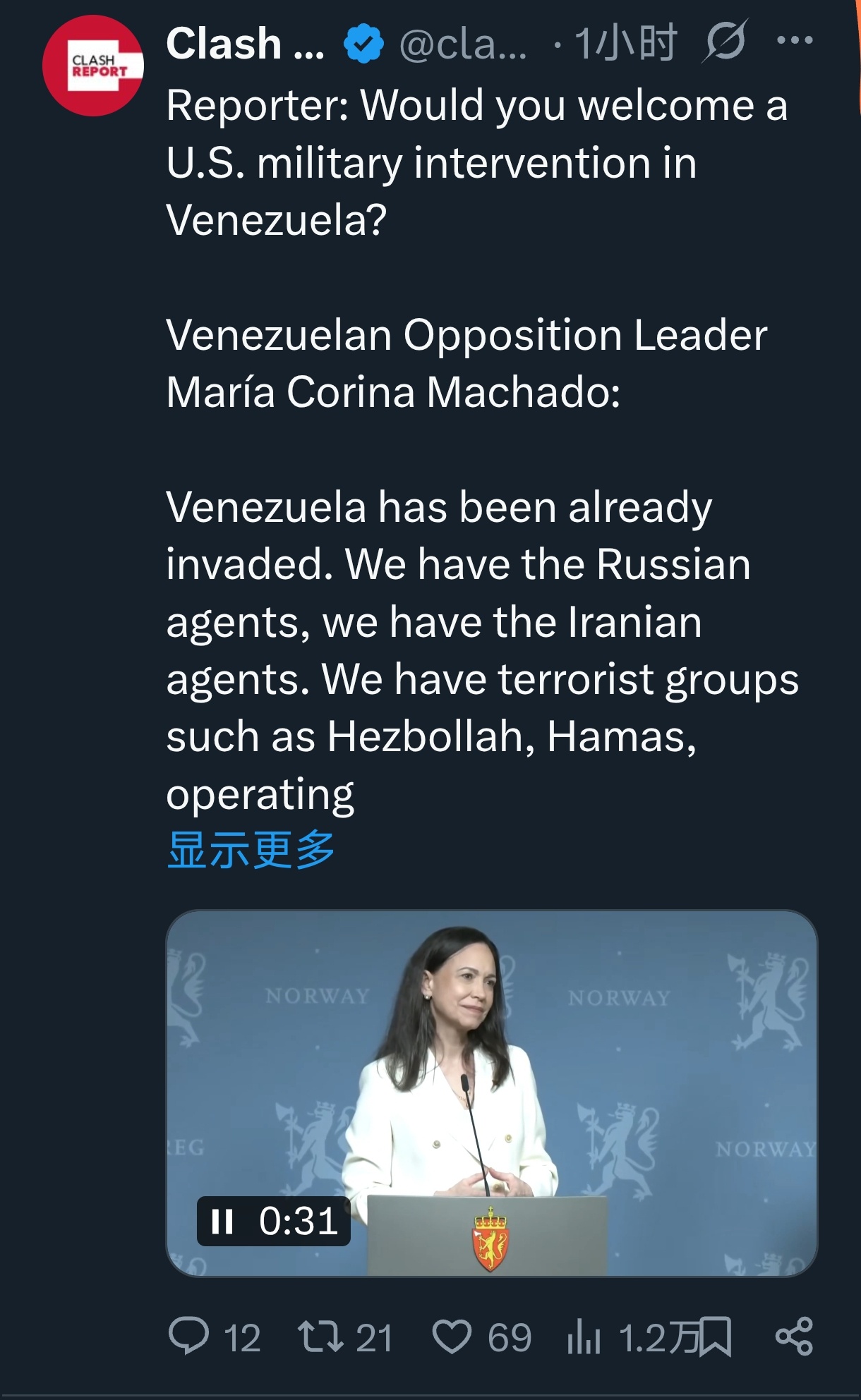 五个字的评语: 丑人多作怪评论区翻了翻,有支持这娘们的,但嘲讽她的不在少数为了朋友们的身心健康,视频就不搬了,以免大家做噩梦玻利瓦尔英雄之地委内瑞拉烽火问鼎计划