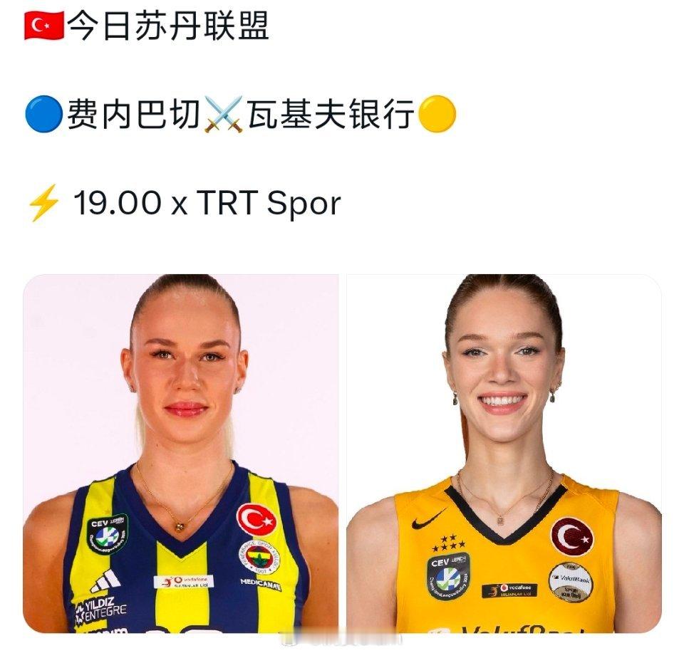 女排土耳其女排超级联赛 今日对决:🟣泽仁🆚加拉塔萨雷🟠🔵费内巴切🆚瓦基弗🟡