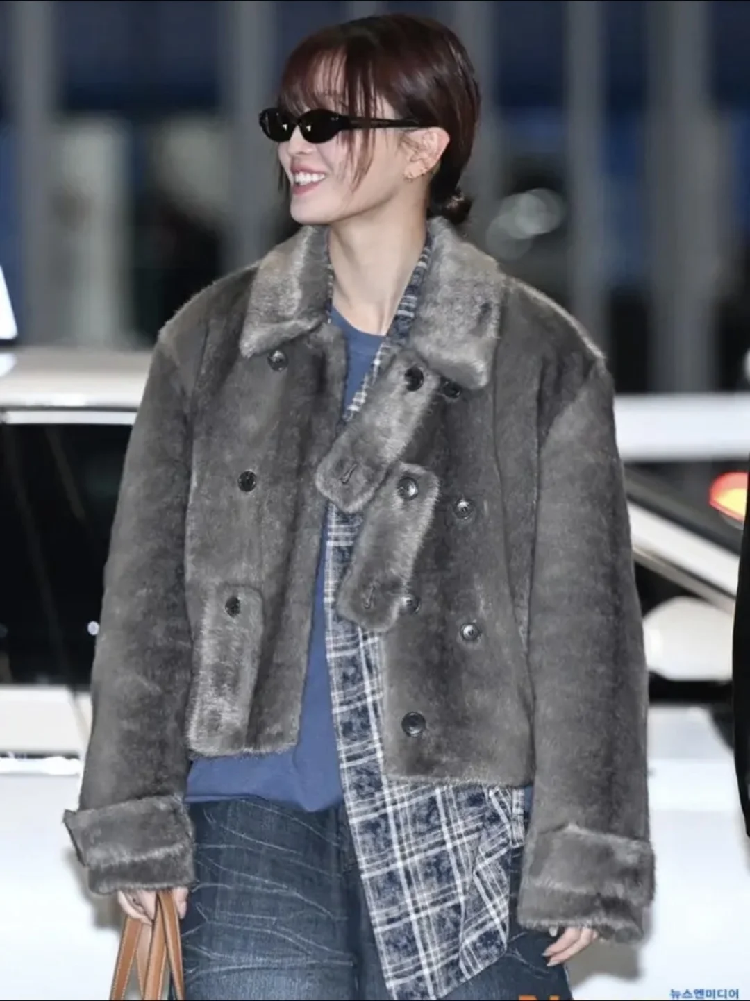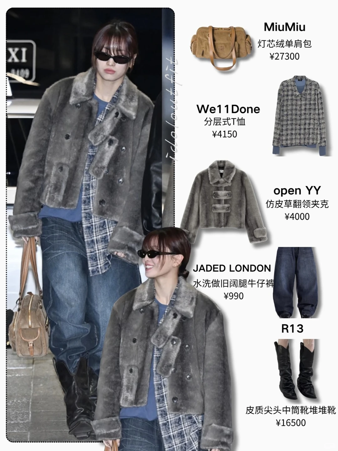 林允这穿搭,普通人照搬都好看!林允的机场look又赢麻了——灰大衣叠穿衬衫