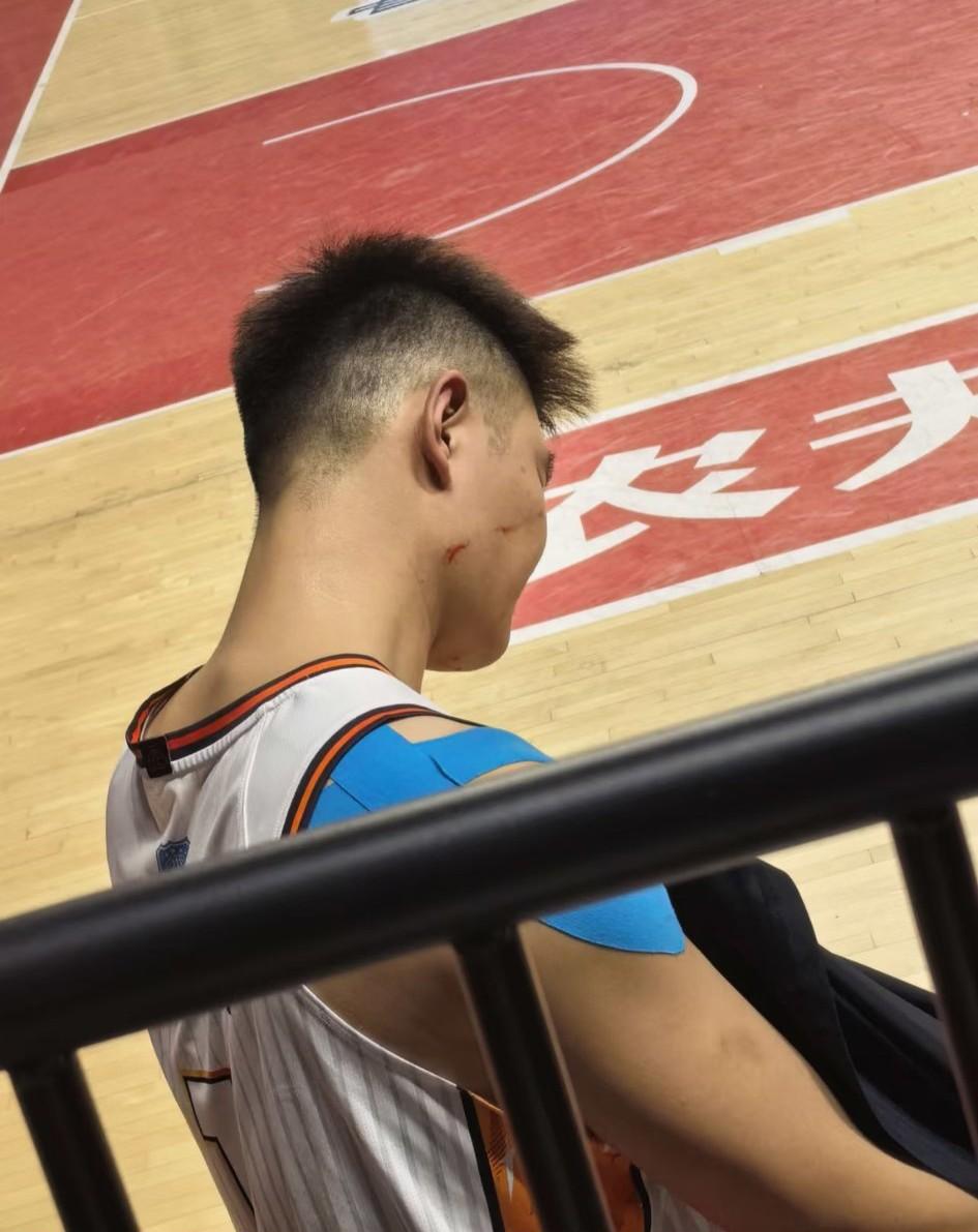 嘉兴vs绍兴这场比赛战至中段,场上发生争议性的一幕:当时场上比分嘉兴45:33领先,嘉兴队1号球员陈鑫伟在争抢进攻篮板的时候,被绍兴队34号球员划伤了脸颊。随后在退回自己的后场的时候,手部动作过大,对方34号球员顺势弹了出去,嘉兴陈鑫伟被裁判吹了违体犯规…… 自己脸上被划了一个很长的血口,对方嘛事没有,自己手部动作稍微大一点,对方故意弹开,自己却被吹了犯规,换做你是陈鑫伟,你是不是也会感到非常的冤!