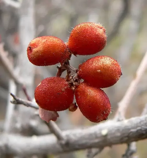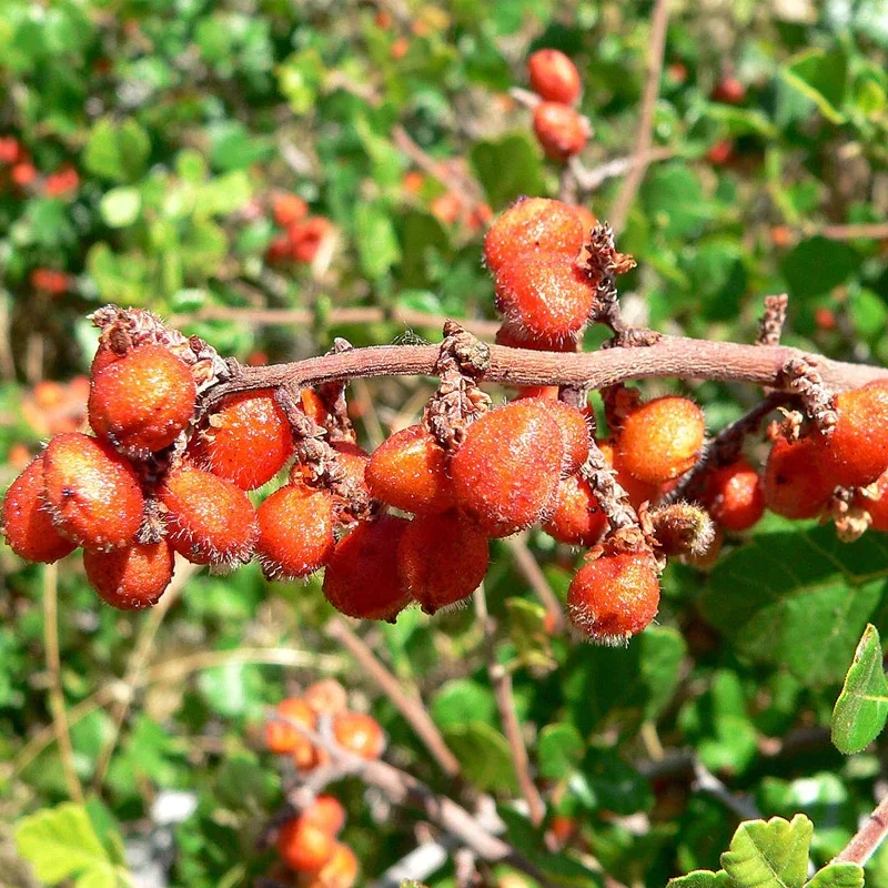 一种非常受欢迎的落叶灌木,高约3.5米(12英尺),广泛分布于北美洲西半部,从加拿大阿尔伯塔省和萨斯喀彻温省一直到美国南部和墨西哥北部。它生长在灌木丛和山林中,也沿着河流和峡谷生长,海拔在1000至2700米(3500至9000英尺)之间。它的小绿叶在传统医学中有多种用途,但这种植物特别受欢迎,因为它的小而鲜红的可食用果实,味道类似柠檬,可用于制备果酱和清爽饮料。为了更好的发芽,松土是必要的,一些专家建议也进行冷分层。一种极好的装饰物,适用于各种各样的温带的气候