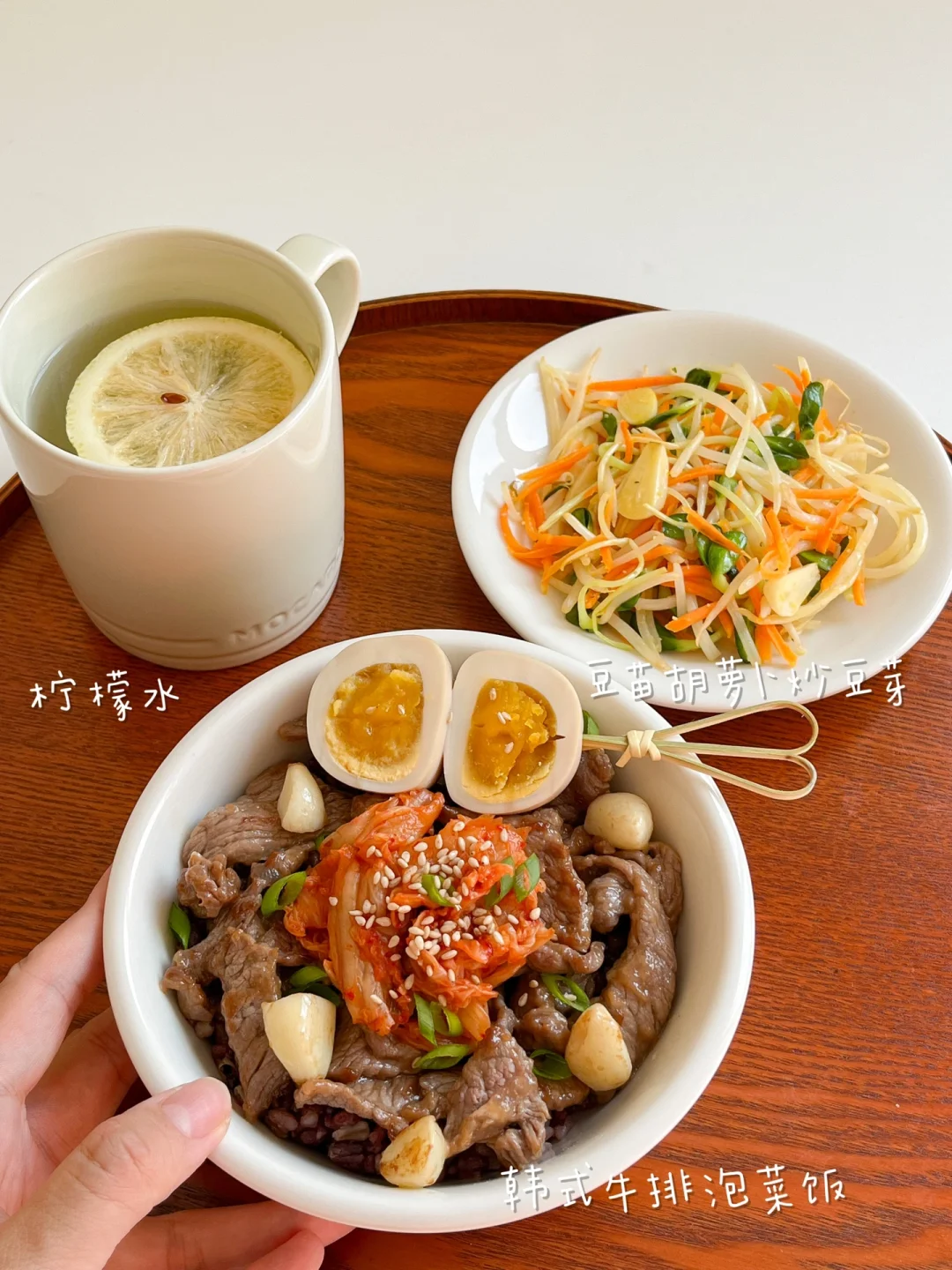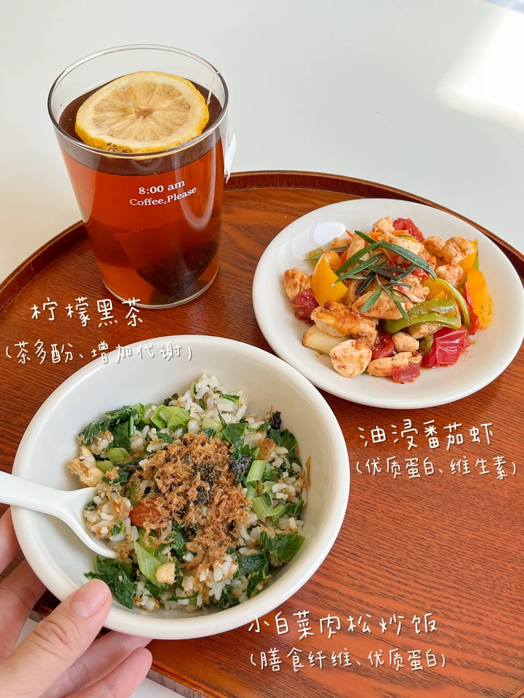 自己在家做减脂餐真的很快乐 想吃什么就做什么 不要一味地吃水煮菜 不仅能吃的饱饱 还能搭配多种食材 我的减脂餐饮食思路很简单 每顿都要有肉 鸡肉、牛肉、虾仁换着吃 主食也不能少 我通常都吃杂粮饭 蔬菜选择就更多啦 都是低卡清淡的家常菜 不知道每天减脂餐吃什么的 来看看吧👀 ❶韩式牛肉泡菜饭+豆苗胡萝卜炒豆芽 ❷小白菜肉松炒饭+油浸番茄虾 ❸低卡照烧茄子饭+凉拌秋葵小番茄 ❹三文鱼菌菇饭+芝士布丁豆腐