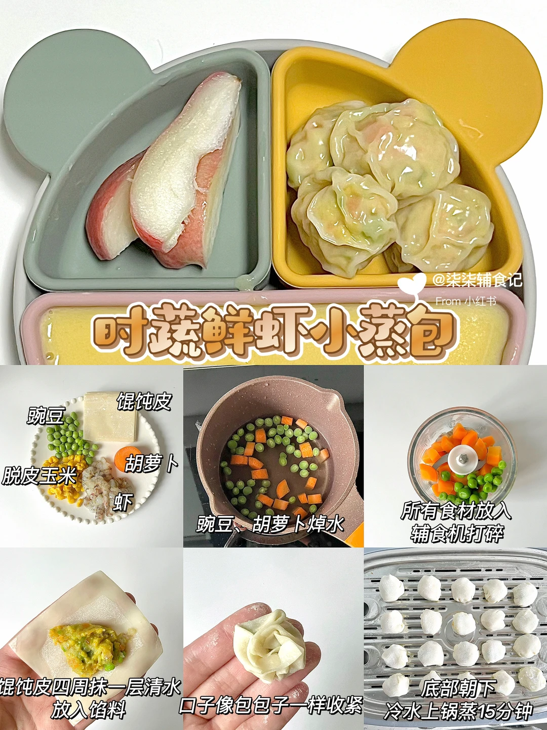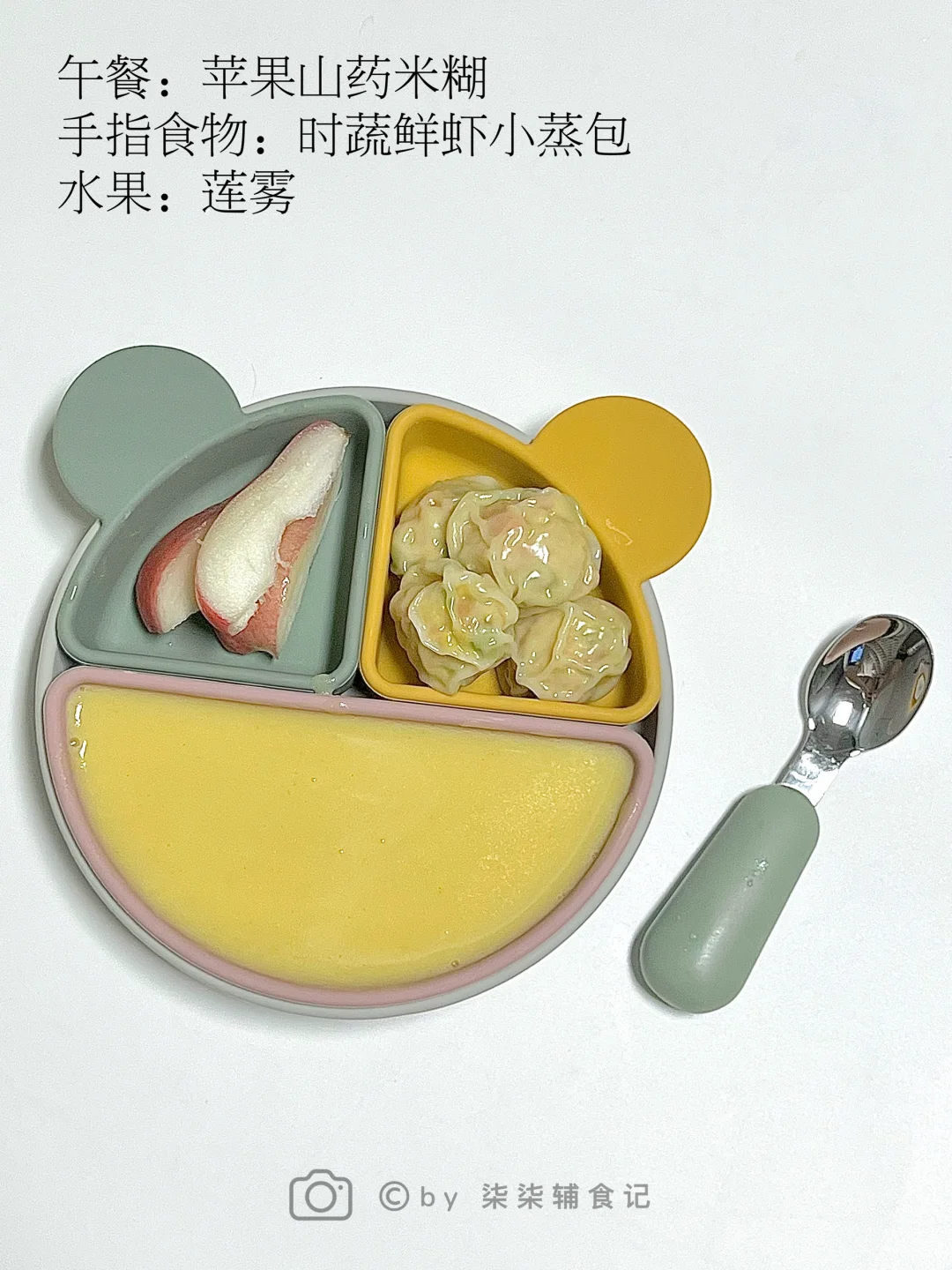 午餐时蔬鲜虾小蒸包和苹果山药米糊,这个蒸包绝了,不用加任何调料都好好吃🤤刚上桌都来不及给柒柒带围兜就被炫了好几个,食材用量随意就行,怎么都好吃😋信我信我~快去做给宝贝吃吃看~~