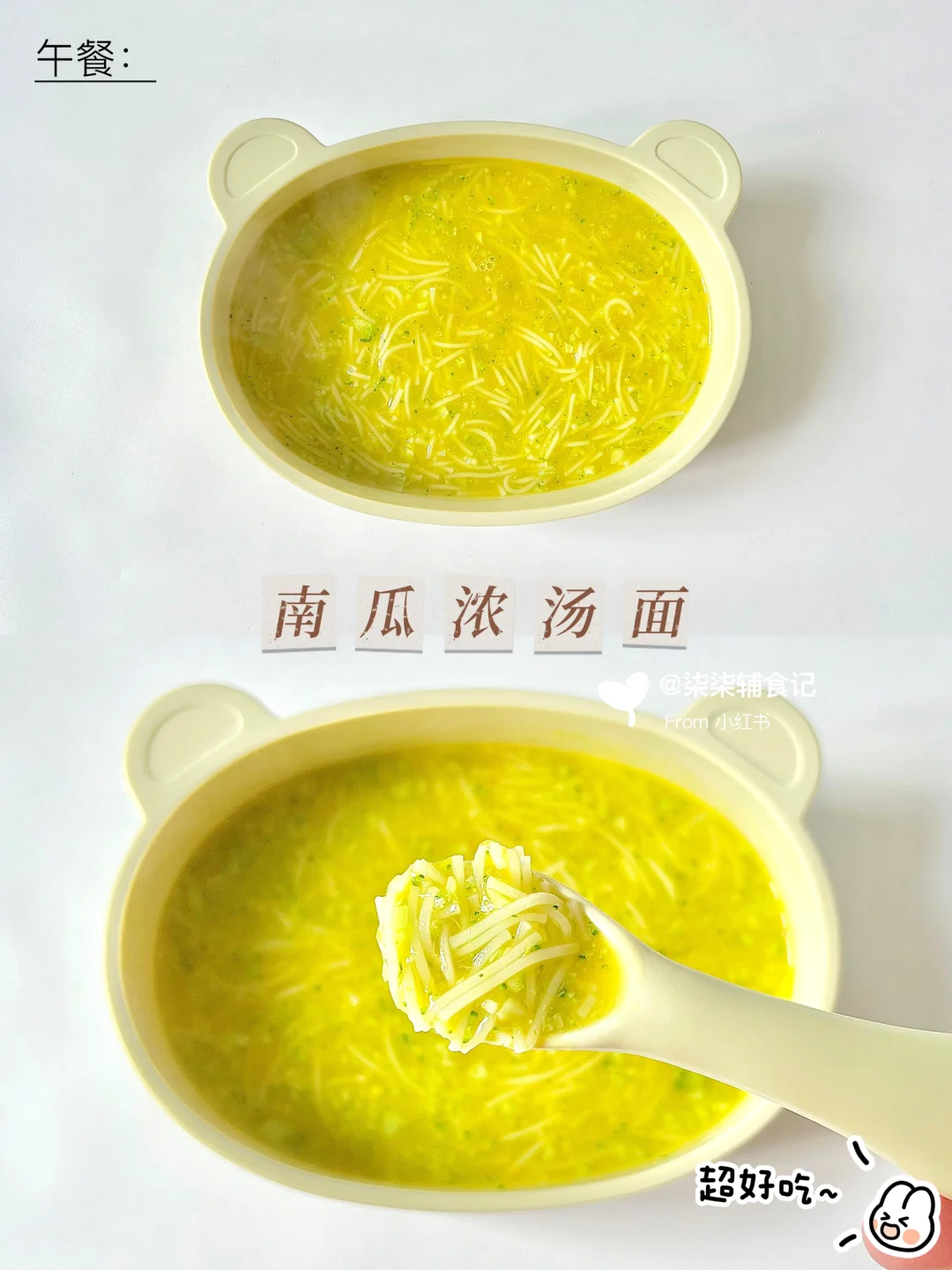 中午吃南瓜浓汤面,贝贝南瓜煮完好香呀!香甜浓郁的,还挺好吃😋