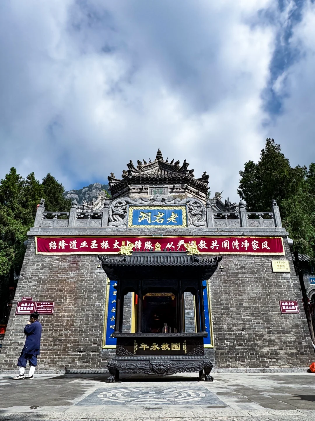 中式对称美学+道家自然仙境。 嵩山老君洞,位于太室山南麓半腰间,背依太室山中峰。相传唐代茅山道士潘师正所凿,供奉道教鼻祖太上老君,后来也供奉无极老母,所以又叫老母洞。 [加一R][加一R]老君洞分东西两院。 ➕东院为三进院落建筑群,主体包括无极老君殿与无极老母殿,其中无极老君殿为清末建筑。 ➕好像小鹿在西院?遗憾被我错过‼️🦌 ✅距离太室山广场徒步距离10分钟 ✅✅是登顶峻极峰必经之处 💪从老君洞徒步到山顶峻极峰还需2小时 👏勉励登山过程中刷到此帖的宝子~加油!