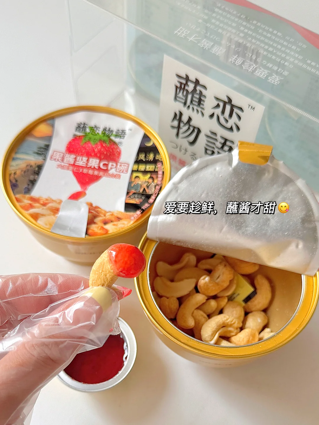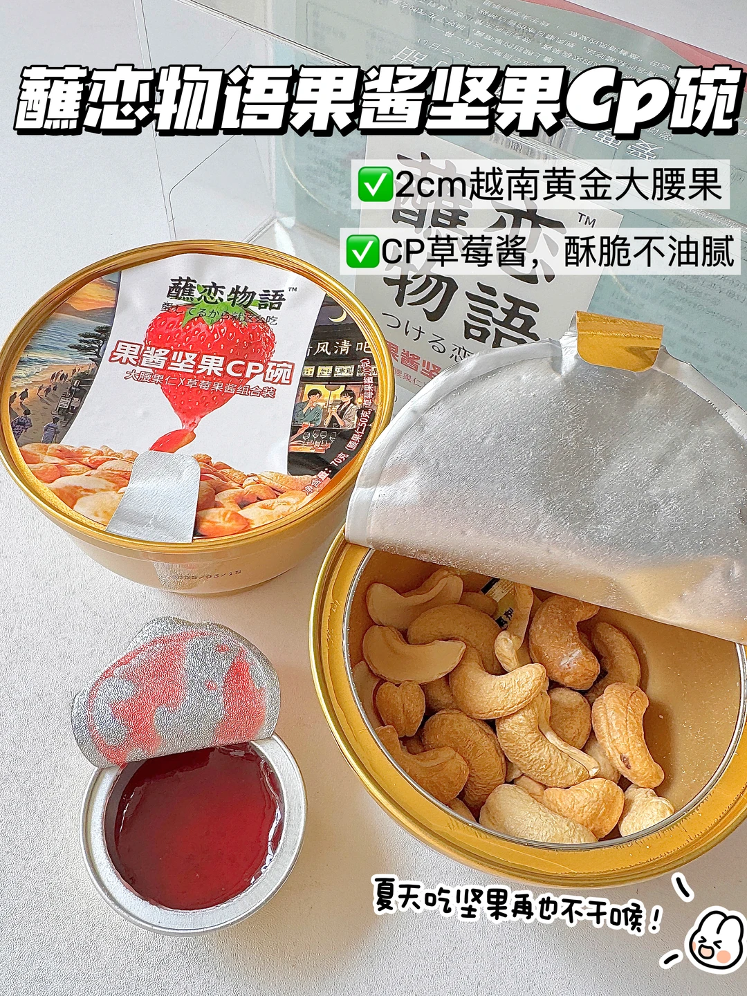 腰果用的是蘸恋物语果酱坚果CP碗哦~里面的腰果个个都好饱满~选自越南大腰果,搭配草莓🍓CP果酱,酥脆不油腻,再也不用担心夏天吃坚果卡喉啦~
