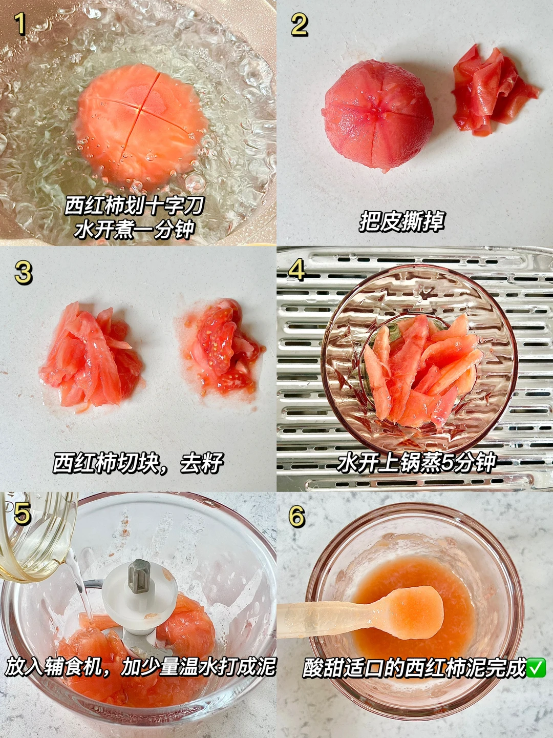 6️⃣搅打成泥,酸甜适口的西红柿泥完成✅
