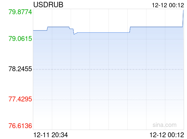 新浪外汇消息2025年12月12日,截至00时12分,外汇市场上美元兑俄罗斯卢布汇率突破1美元兑换79.8455俄罗斯卢布。涨幅为2.0448%