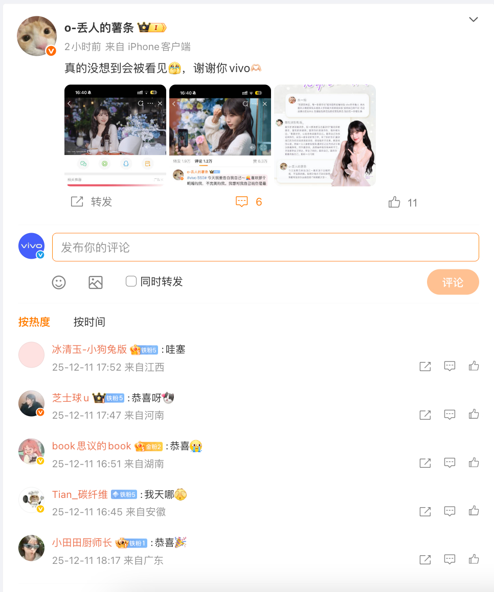 谁说品牌方不懂宠粉!这波我为vivo正名!最近vivo官宣了代言人田曦薇,还在微博发起了薇我S50 告白征集活动,今天就下场翻牌了好几个小田粉丝的告白,这个vivo超宠的!薇我S50vivo S50vivo S50系列美学大使田曦薇