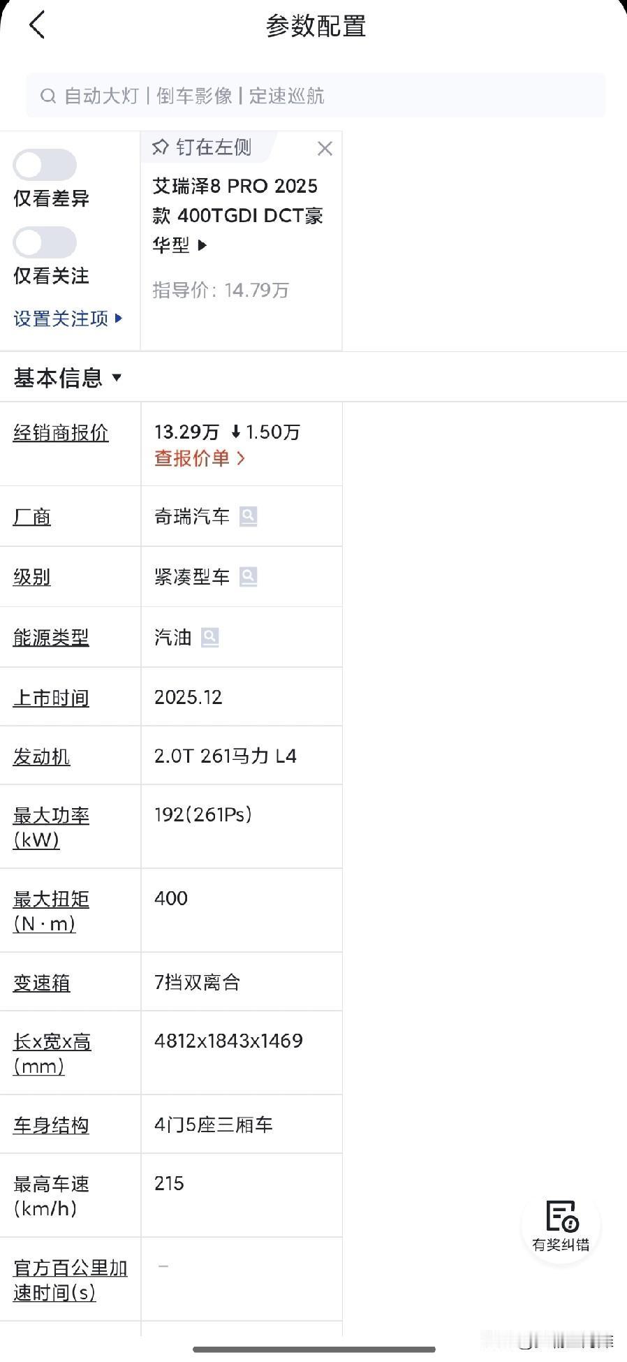 最近网上传的轰轰烈烈的奇瑞又出新款车型了。 那就是艾瑞泽8Pro400t高功率版。这款车长度还没有吉利的帝豪第5代长。动力呢,没有吉利的2.0t的星瑞大。而且星瑞的指导价只需要11万多,艾瑞泽8Pro400t的指导价需要14万接近15万贵了整整3万。但是动力还是相差11匹。 所以说奇瑞每次都是起得早,但赶得晚集。艾瑞泽8PRO这样怎么去和星瑞竞争,怎么和吉利去竞争,甚至连帝豪都要赶超你了。艾瑞泽8 奇瑞瑞艾瑞泽8