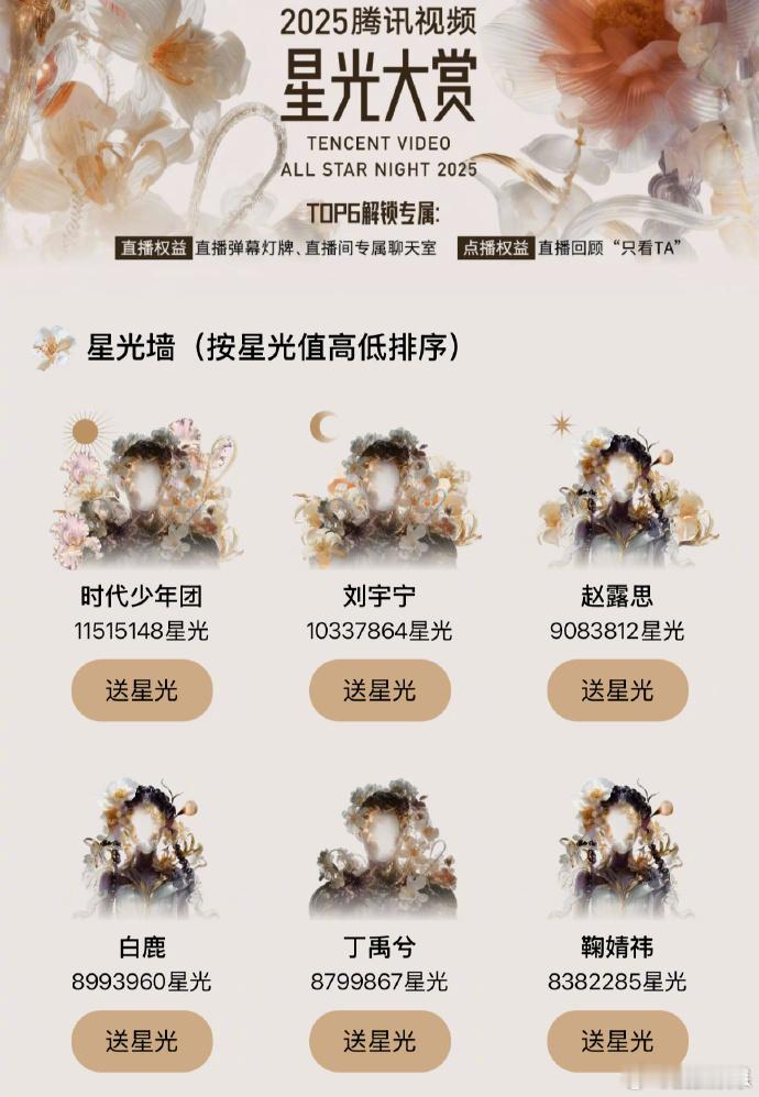 刘宇宁星光值TOP2刘宇宁在2025年腾讯视频星光大赏的星光值TOP2!粉丝们真
