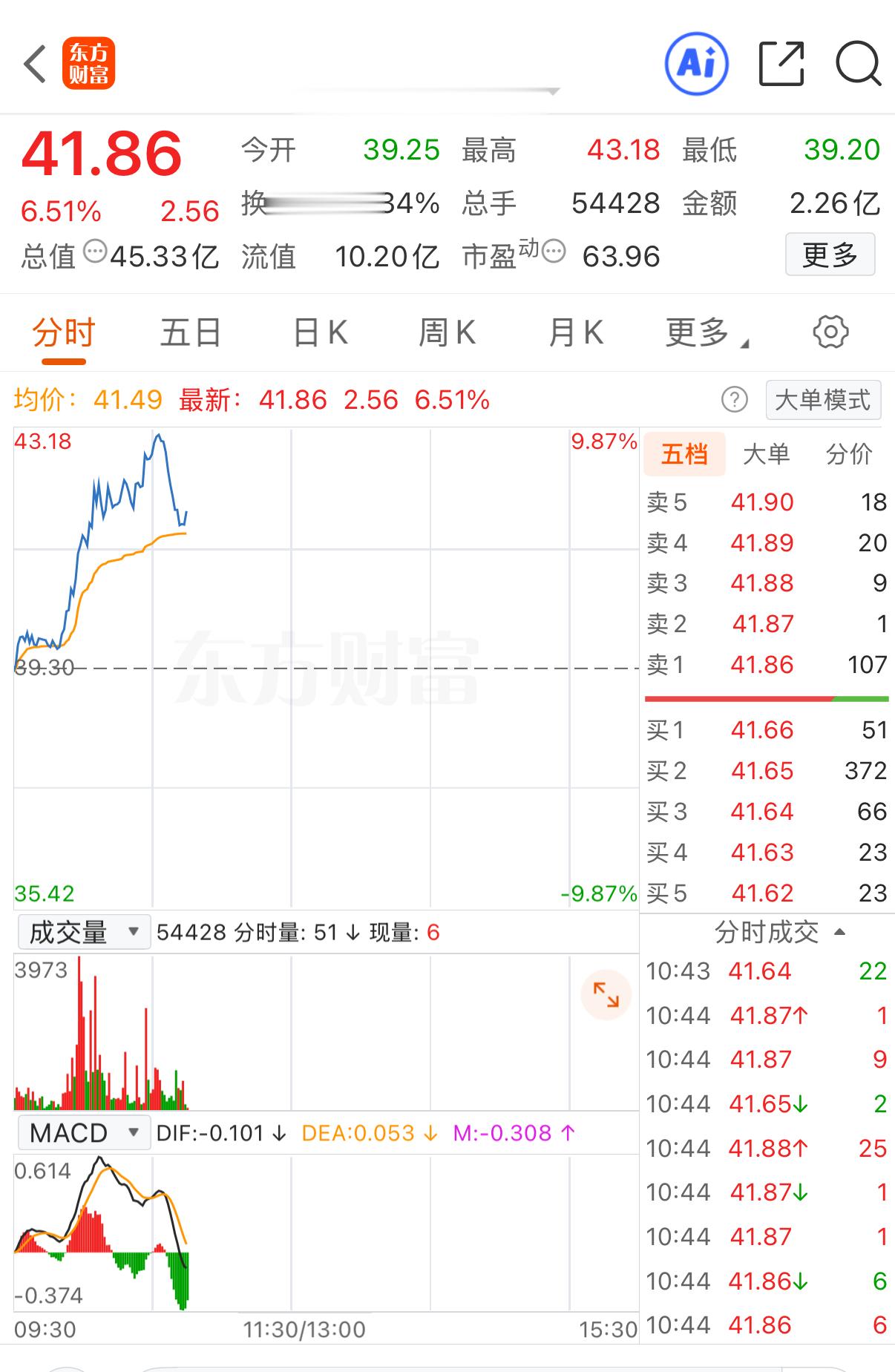 上证报中国证券网讯(记者何治民)12月12日早盘,太力科技一度涨超9%。截至10时44分,该股股价涨6.51%,报41.86元/股。