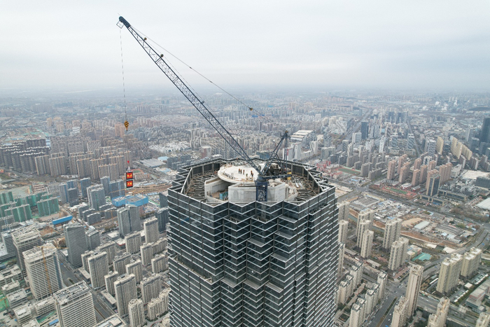 这是继核心筒主体结构、外框钢结构、主体幕墙、塔冠钢结构等封顶之后,“山东第一高”突破的又一关键节点,在济南中央商务区五大标志性建筑群中以“山”之势登峰齐鲁之巅,助力国际化一流中心城区建设开创新局面,成为展现“强省会”现代化形象的新地标。