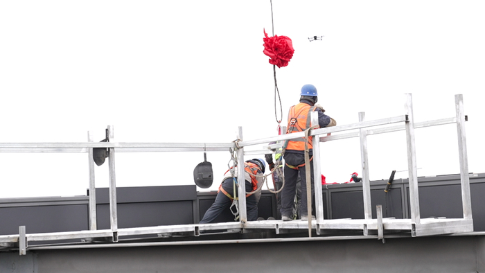 特别是在最后的塔冠幕墙施工阶段,项目团队以铁军之姿披荆斩棘,成立尖刀专班,构建“专业统筹+项目一线”两级管控体系,通过优化施工组织、增加有效作业时间、提升作业效率等举措,成功克服非标楼层造型复杂、高海拔施工作业、低温寒潮与强风天气等多重挑战,以“昼夜兼程、分秒必争”的决战姿态推进冲刺攻坚,为城市天际线锻铸巍峨挺拔的钢铁脊梁。