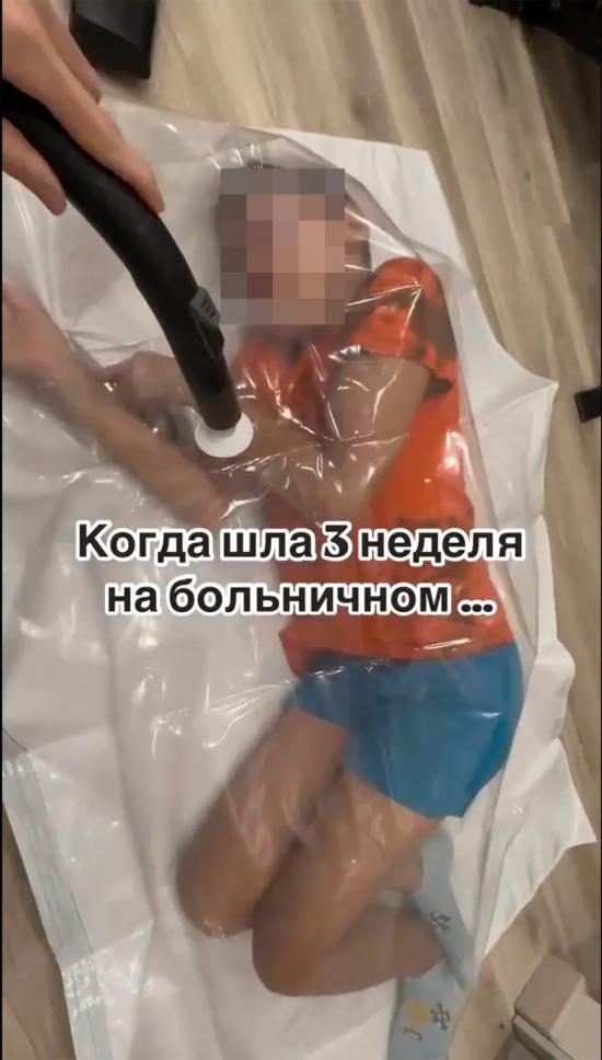36岁的安娜·萨帕里娜为获取网络关注,竟将10岁儿子塞入工业真空袋中抽气拍摄。视频中,男孩仅两秒后就发出窒息哭喊,而他母亲却将此作为"病假第三周"的搞笑内容发布。