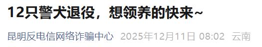 根据《中华人民共和国动物防疫法》《城市养犬管理规定》等相关法律法规,现将昆明市公安局2025年退役警犬公开领养工作相关事宜公告如下:
