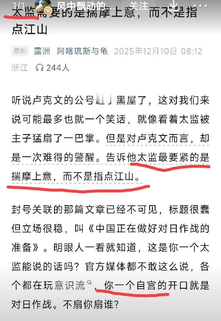 任何人都可以批评别人,但侮辱人格就不对了, 平台提供给大家的,是自由讨论的空间,而不是侮辱谩骂的场所,因为别人观点和自己不同,就动辄下三路,什么“菊花”、“太监”的,都出来了, 鲁迅先生说过:辱骂恐吓绝不是战斗,张教授和卢克文,混的都不错,好好想想为什么?因为他们从来不侮辱别人, 自己饭都吃不饱,只有在网上才有存在感,这只能证明自己虚弱。