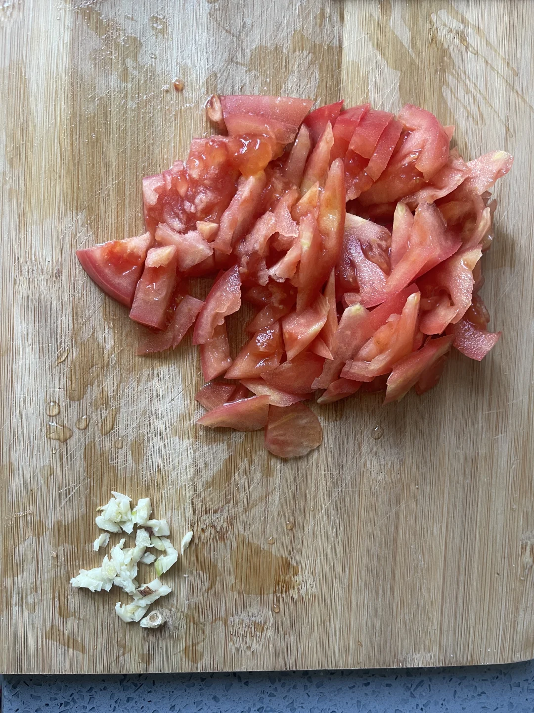番茄大蒜切碎备用