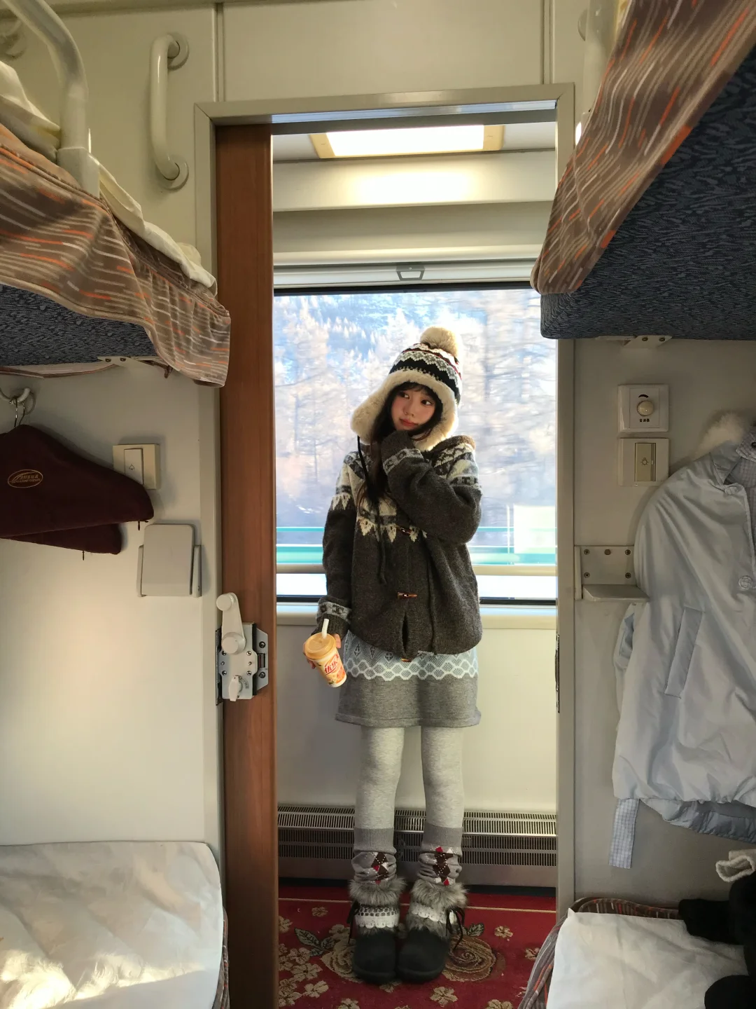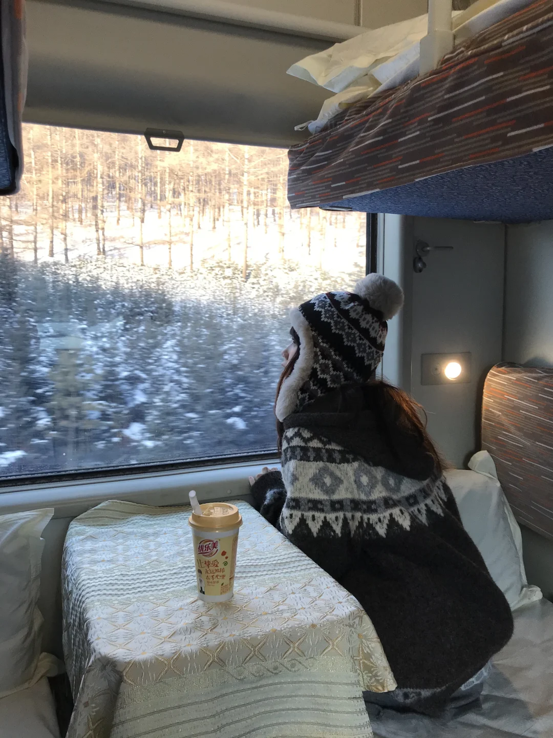 从火车上醒来 一觉睡醒就到阿尔山啦 还看到了日出🌅 在火车上拍照 好有生活气息的live 结冰的窗户 暖暖的优乐美 我的旅程从这一刻开始幸福