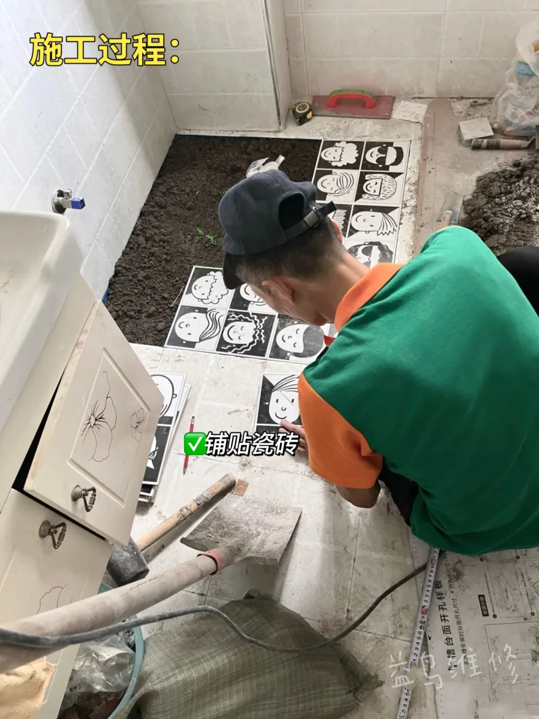 先把卫生间周边家具、地面封好,避免施工弄脏