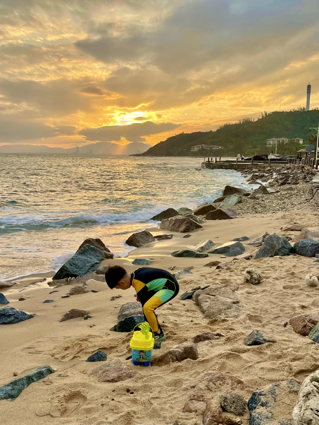 不得不说反向旅游,陵水真的太适合遛娃了!冬天气温刚好、气温稳定在20-28℃,白天穿短袖短裤刚好,傍晚加件薄外套就行,完全避开内地的寒冷,孩子在沙滩挖沙、赶海捡蟹、近距离撸海洋动物、水中浮潜、拉地笼,每天疯玩到倒头睡,完全不想离开这个被低估的海岛小城。