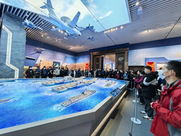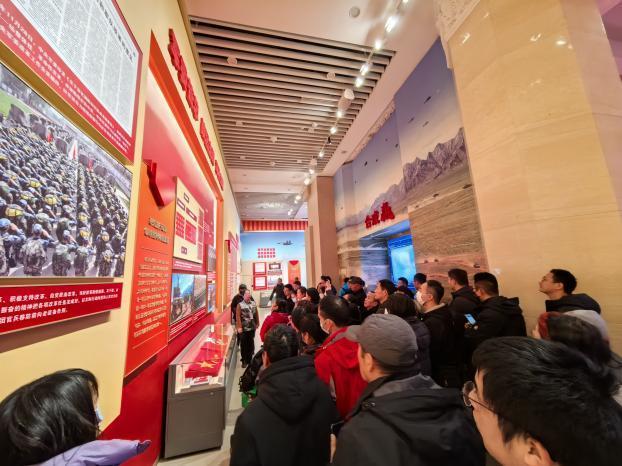 自主择业军转干部与“首都老兵”志愿者参观“领航强军向复兴”展厅