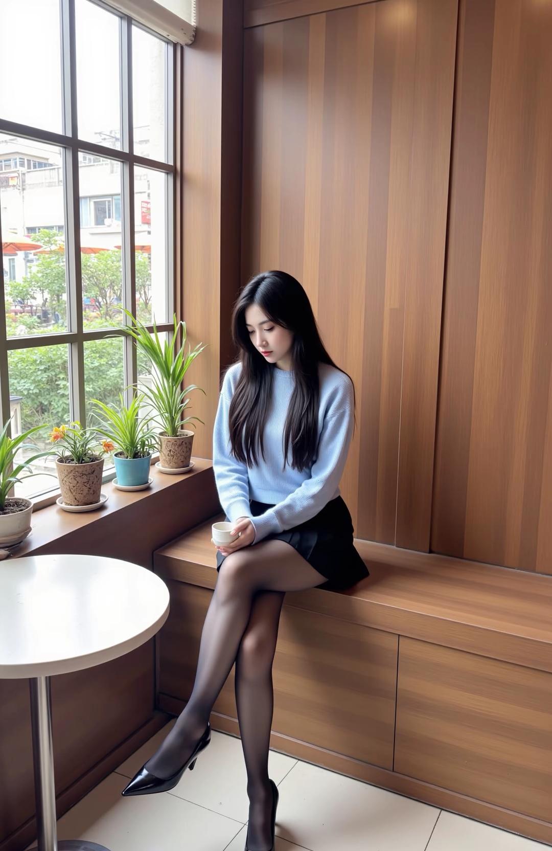 年轻气质美女,纯欲风,皮肤白皙,偶像气质,长直发,松松垮垮的轻薄质地潮流短背心,