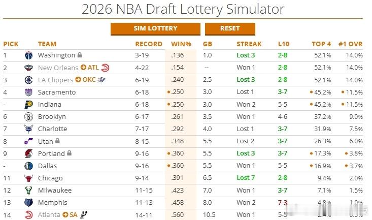 客场不敌火箭后,快船战绩6胜19负,排名联盟倒数第3😳按照目前排名,明年选秀大会快船有52.1%的概率抽到前4顺位,有14%的概率抽到状元签,但这个首轮签已归雷霆所有。2026年被视作选秀大年,包括达伦-皮特森、AJ-迪班萨和卡梅伦-布泽尔等新星球员均计划参选火箭击退快船