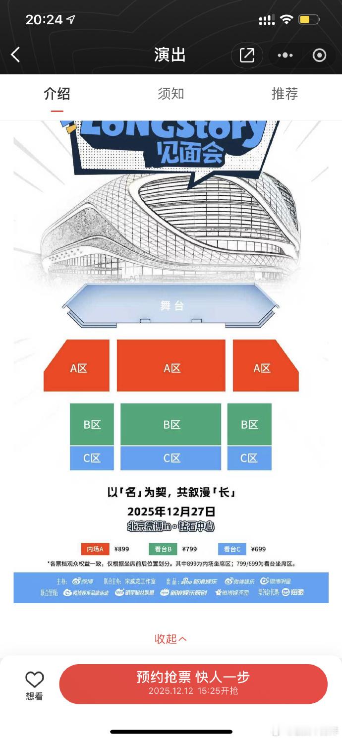 宋威龙见面会今日开票 哇,宋威龙见面会开票时间到啦!今天下午15:25,🐱平台开启抢票模式。我已经提前把所有信息都准备好了,就等开票的那一刻,希望能顺利抢到票,和龙龙来一场甜蜜的约会!