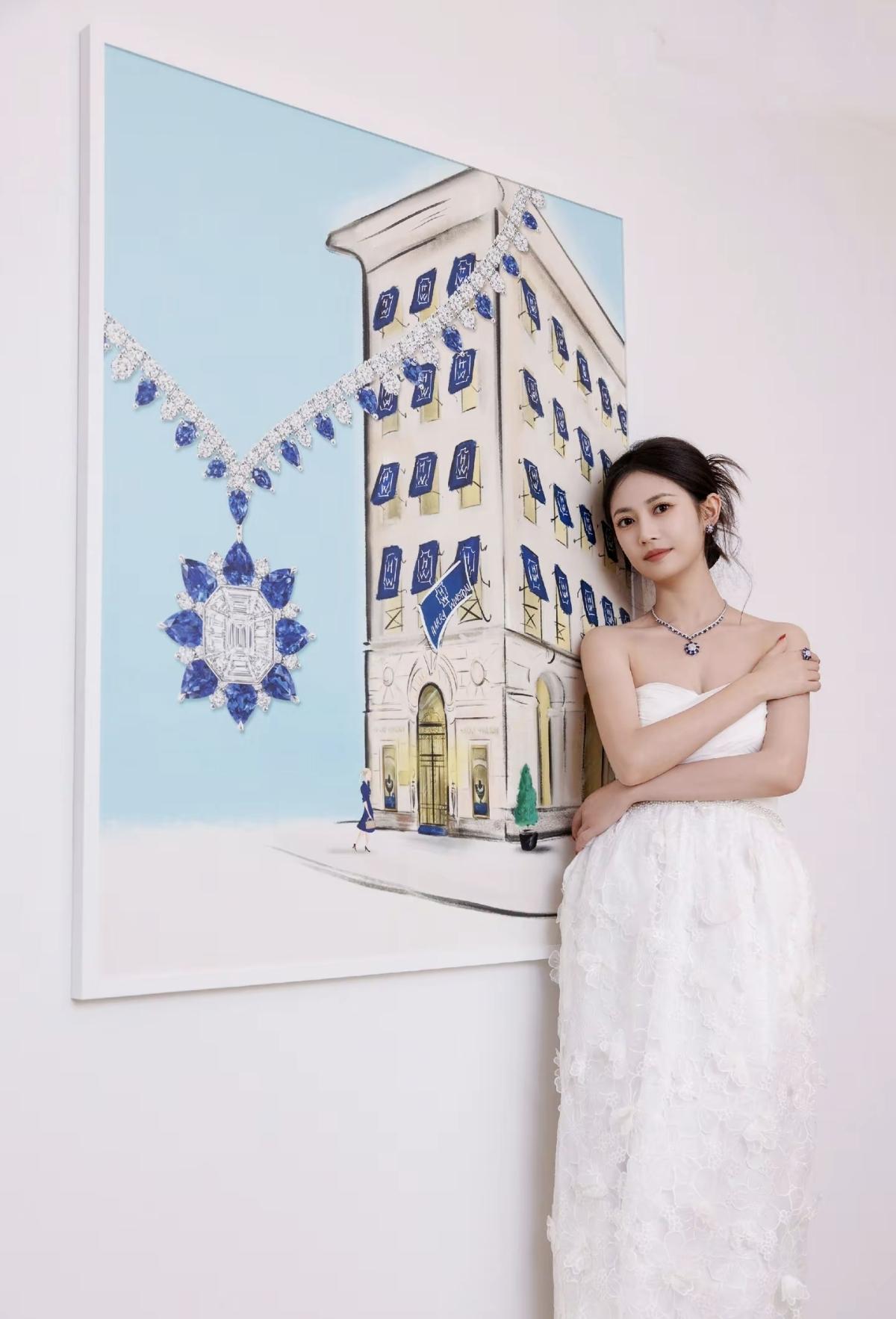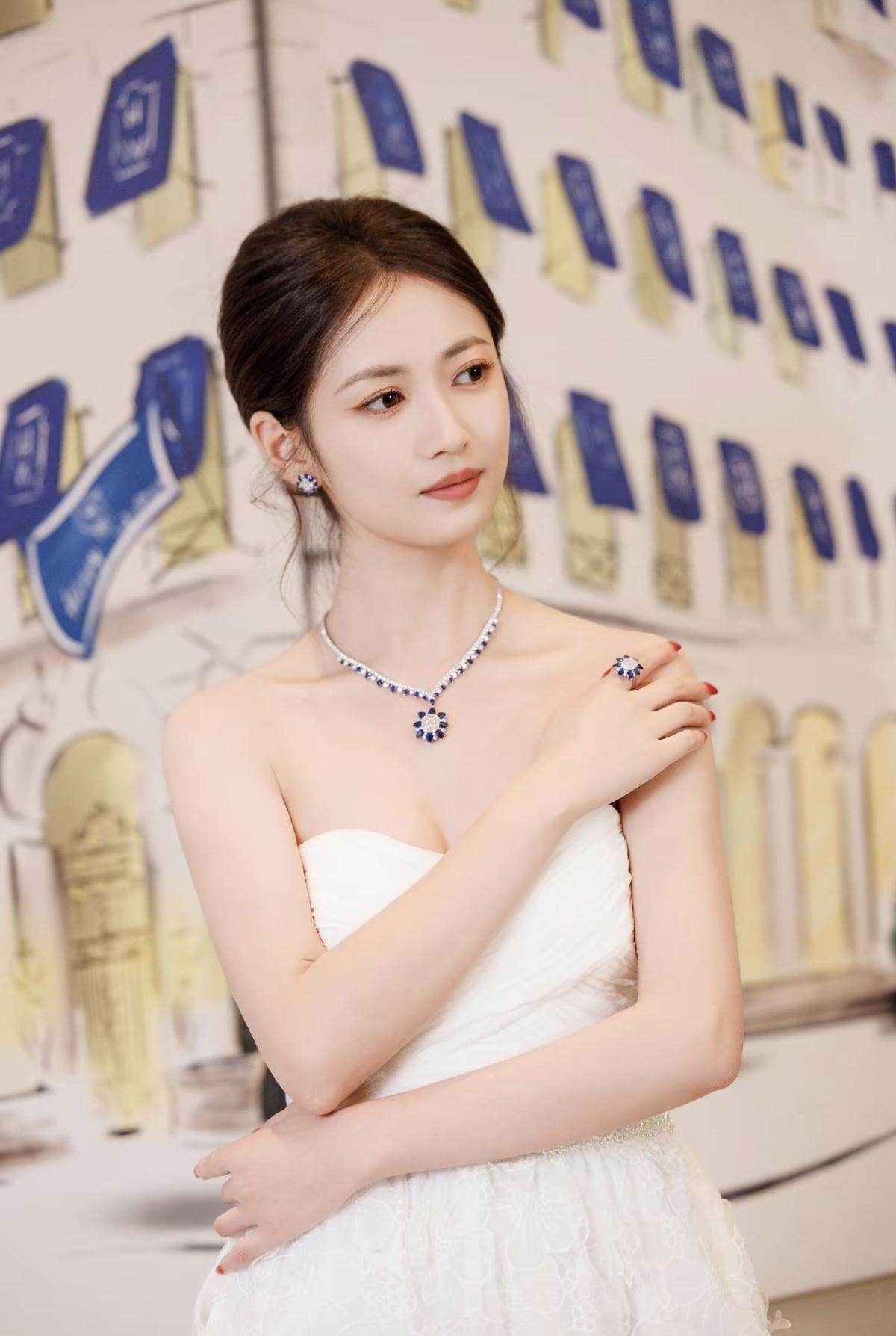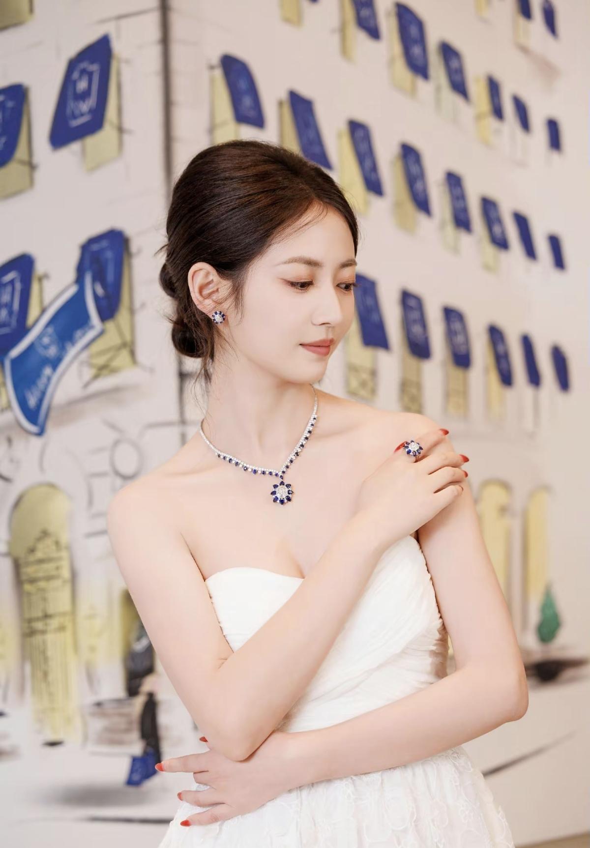 浅蓝色抹胸礼服明媚动人——唐艺昕。每日明星美图分享