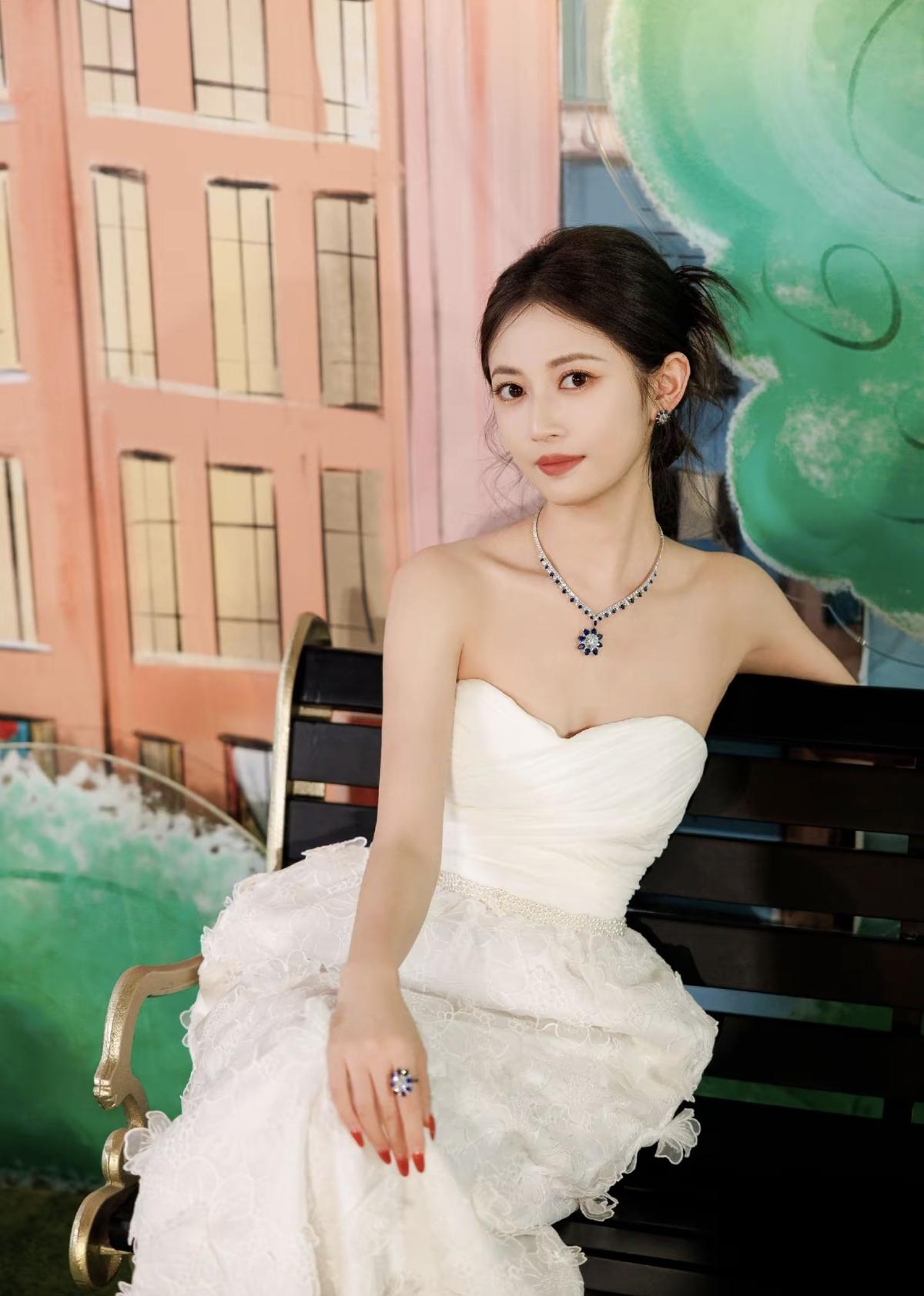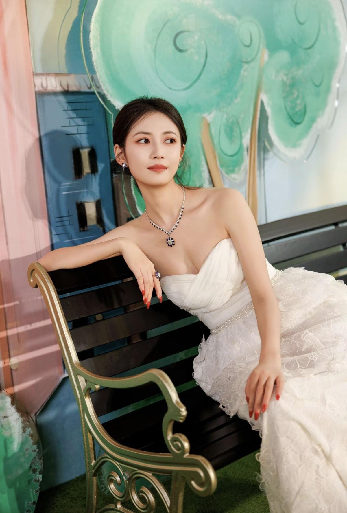 抹胸裙勾勒出利落肩颈线,陈钰琪把清冷与明艳揉得恰到好处,锁骨处的光影流转,高级感