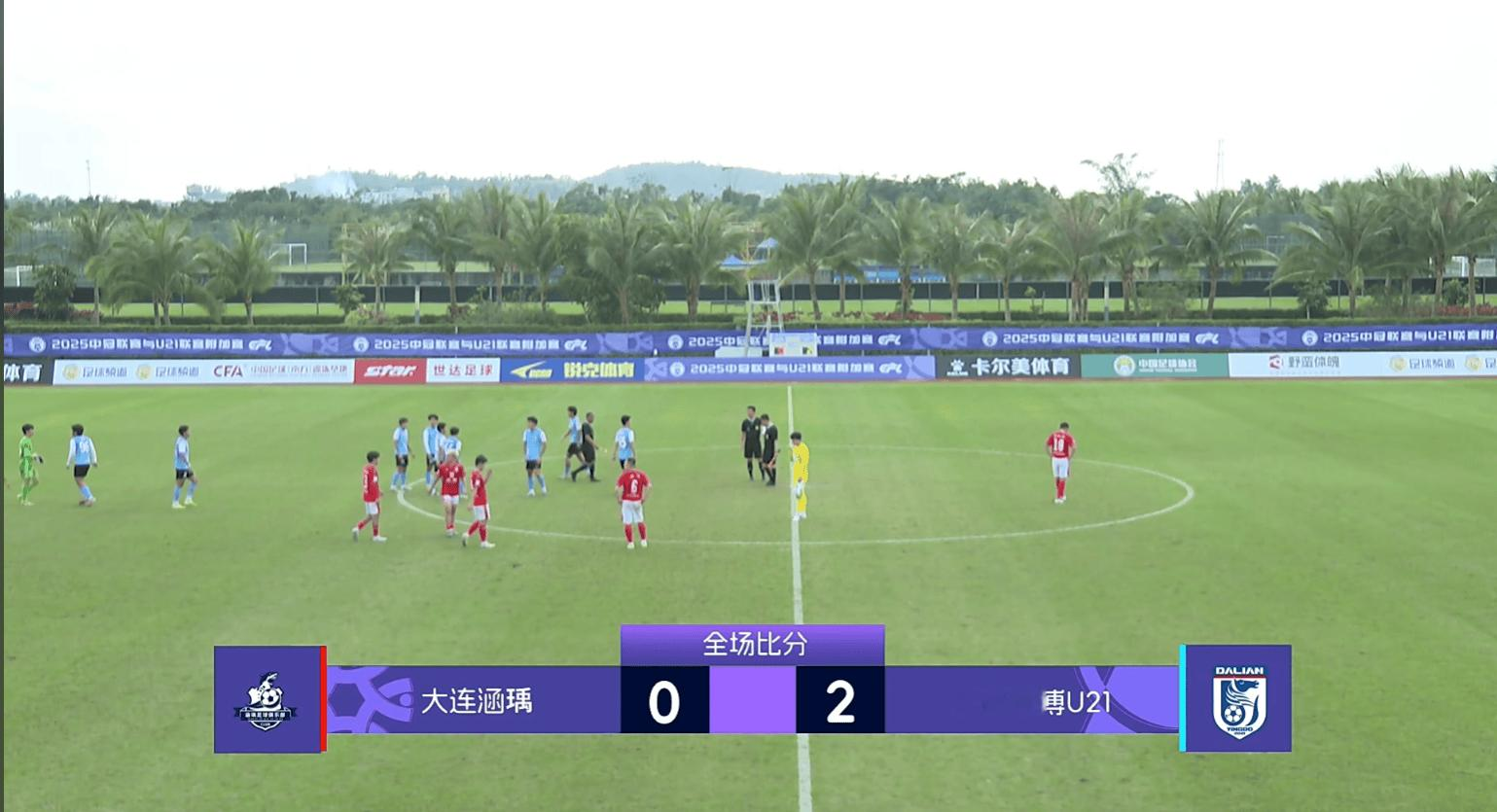 虎扑12月12日讯2025中冠U21冲乙附加赛的比赛今天在海口观澜湖训练基地7号场进行。最终大连英博U21凭借下半场靖宽杰和黄山的两粒进球2-0战胜对手,获得下赛季中乙席位。