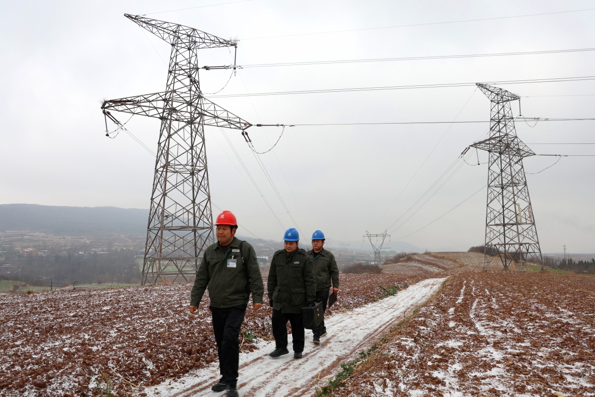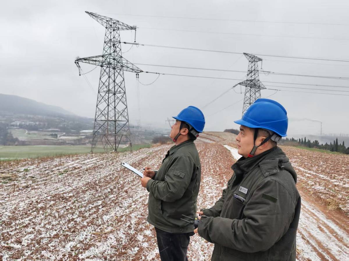 12月12日,洛阳市新安县最高气温1℃,最低气温零下2℃。冒着寒冷天气,国网新安县供电公司运维部输电线路班员工对220千伏1、2瀛云线现场观冰点进行监视巡视,守牢电网安全。