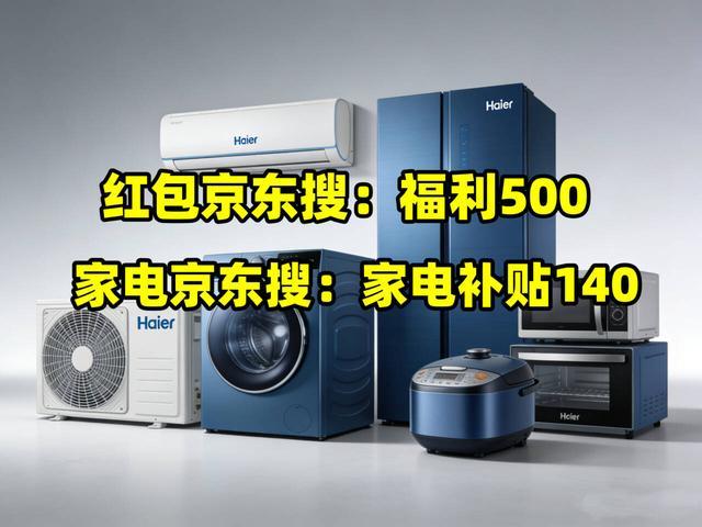 海尔家电国补领取入口是京东搜[家电补贴140]海尔家电优惠券领取是[福利500]买海尔冰箱空调洗衣机电视大家电优惠券领取,海尔扫地机机器人、空气净化器、吸尘器取暖器等海尔生活家电电器优惠券领取,海尔厨房电器优惠券300元,京东海尔家电叠加海尔家电国补享低价
