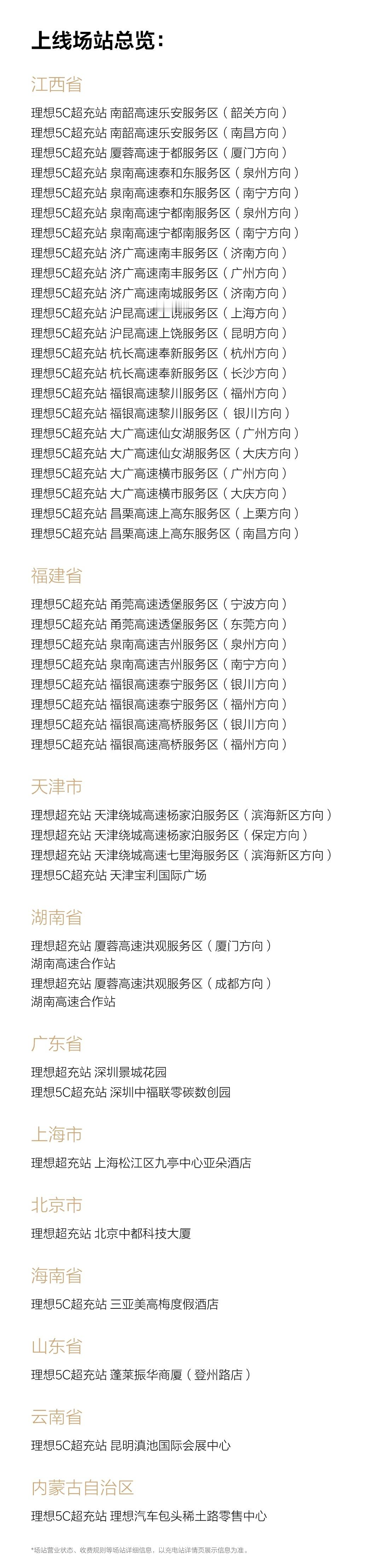 上周又有44座理想超充站投入运营了,这速度是真快,截止到12月7日,理想超充已经布局全国280个城市了。看了一下,江西省有这么多理想超充站覆盖,正好过段时间元旦小长假要开着理想i8去那边自驾游,不用担心会有什么续航焦虑了。记得上次在理想5C超充站补能,速度是真快,去商场等杯咖啡的功夫再下来,就已经充进去很多电了,并且还不是最大功率状态下。理想的纯电体验真的越来越好了~ 理想i8