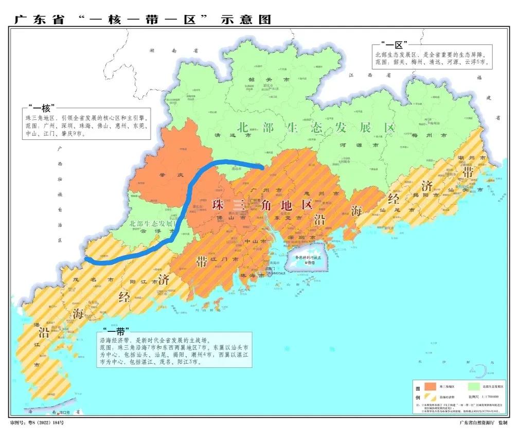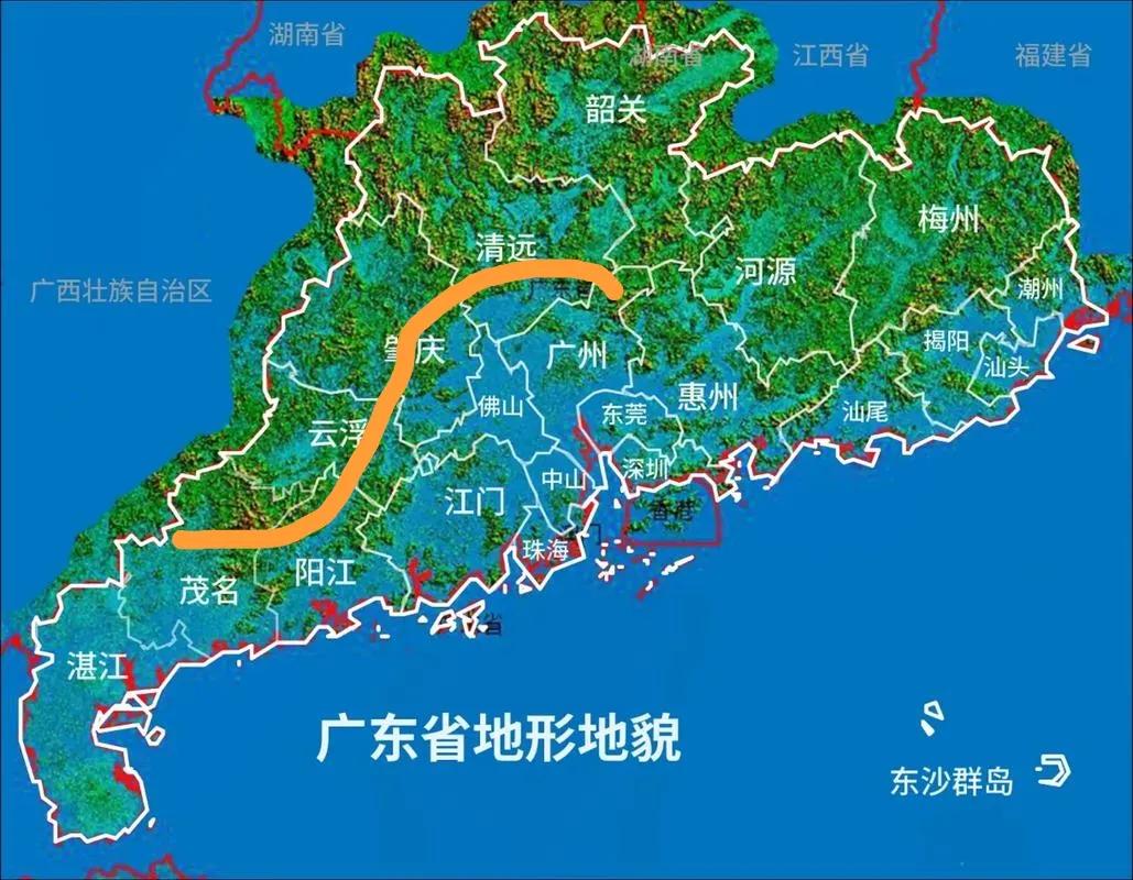 广东省的北部生态发展区划分不合理。目前,被划进北部生态区的有梅州、河源、韶关、清远、云浮五个市全域,一边定位侧重于生态保护与可持续发展,而另一边又在清远清城区又大力发展工业。同时,肇庆西北部的广宁、怀集、德庆、封开4个山区县的地形与北部山区一样,不能大量发展工业。所以,建议将清远市的清远、清新区划入珠三角,将云浮市的新兴县划入珠三角,将肇庆的4个山区县划入北部生态发展区,将茂名市的信宜市划入北部生态发展区。这样,云浮就不是北部飞地了,肇庆也不会被说成假珠三角了。