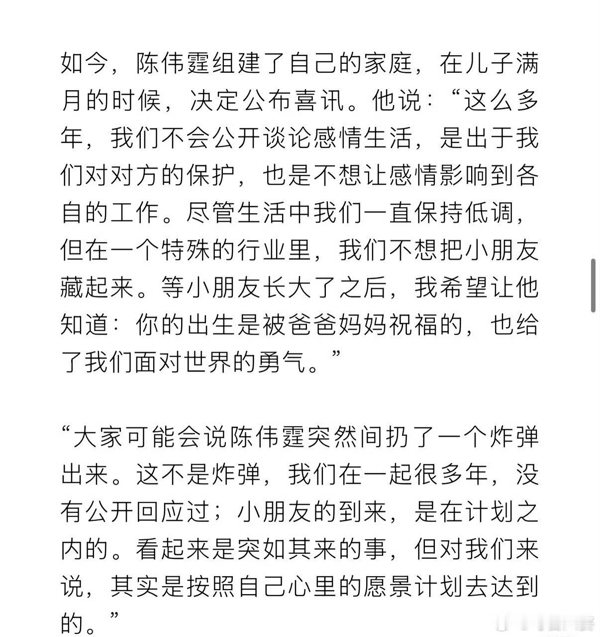陈伟霆说不会做未婚爸爸陈伟霆好实诚一男的,一直强调自己很“保守”,不会当未婚爸爸。现在看确实是说到做到,从怀孕到生娃全程陪伴,把责任俩字刻进了DNA里。