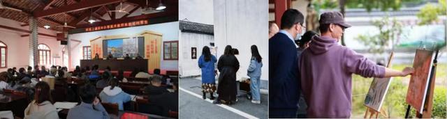次日,活动转场至小越街道新宅村。在民国建筑大会堂里,老师们首先聆听了区文化特派员陈肖平关于村落历史、建筑与人文的专题分享,其中特别介绍了新宅村深厚的红色文化底蕴——村内的“美人弄”被誉为“浙江省红色第一弄”,其背后蕴藏的革命历史与精神传承,为这座古村增添了厚重而光辉的一笔。随后,老师们带着对乡土与历史的感悟,分散至村中各角落进行写生。
