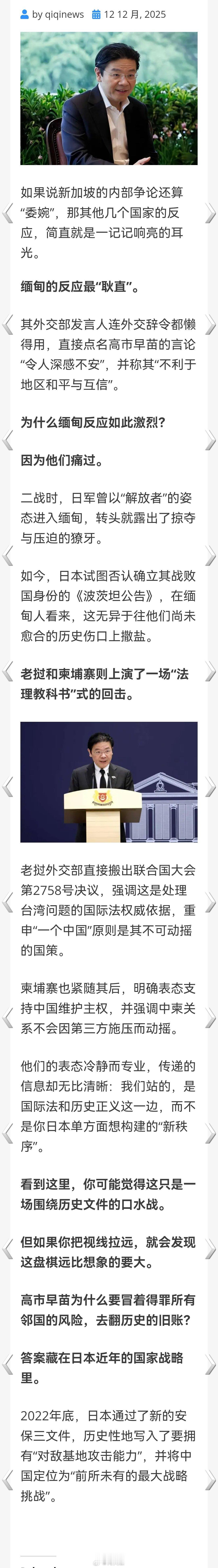 起风了!东盟多国支持中国,新加坡急澄清,高市言论成关键。白宫回应中日冲突后日本失望海外新鲜事何天恩