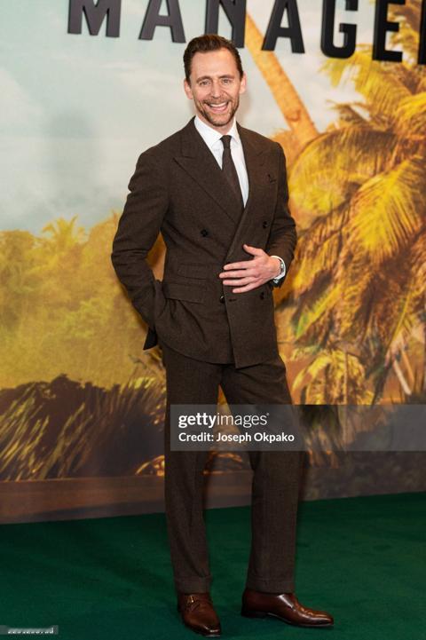 演员及制作人汤姆·希德勒斯顿身着Ralph Lauren Men's 25秋季系列出席《夜班经理》(The Night Manager)第二季首映礼