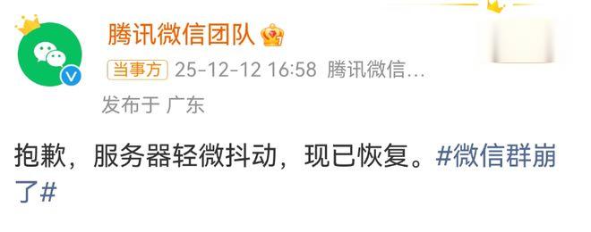 随后,腾讯微信团队发布消息:抱歉,服务器轻微抖动,现已恢复。