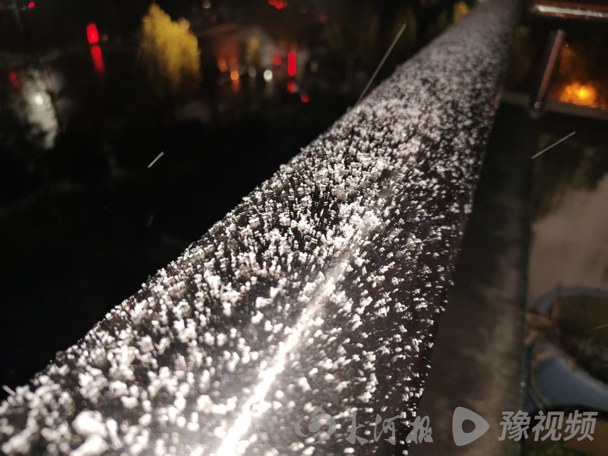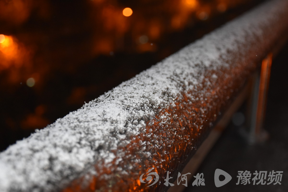 大河报·豫视频记者在周口平安路附近看到,伴着夜晚的城市灯光,雪花的身影清晰地出现在人们视线中。降雪持续一会儿后,已经能看到建筑物或停放的车上,有了一层薄薄的积雪。