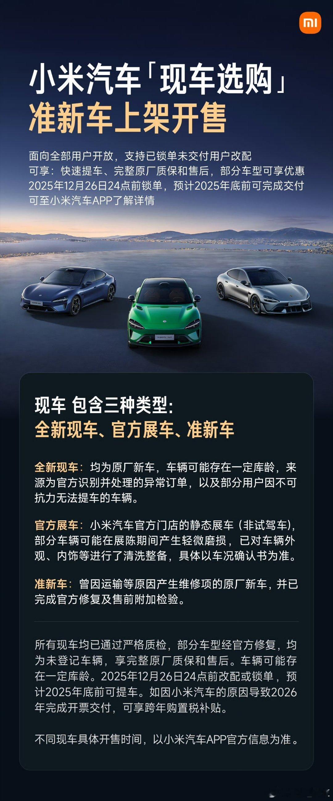 雷军回应小米上架准新车车辆运输等原因产生的维修,然后经过官方进行修复和检验。个人觉得运输途中一般也就是小磕碰、掉漆小问题吧!而且价格便宜享受新车体验感觉挺不错。